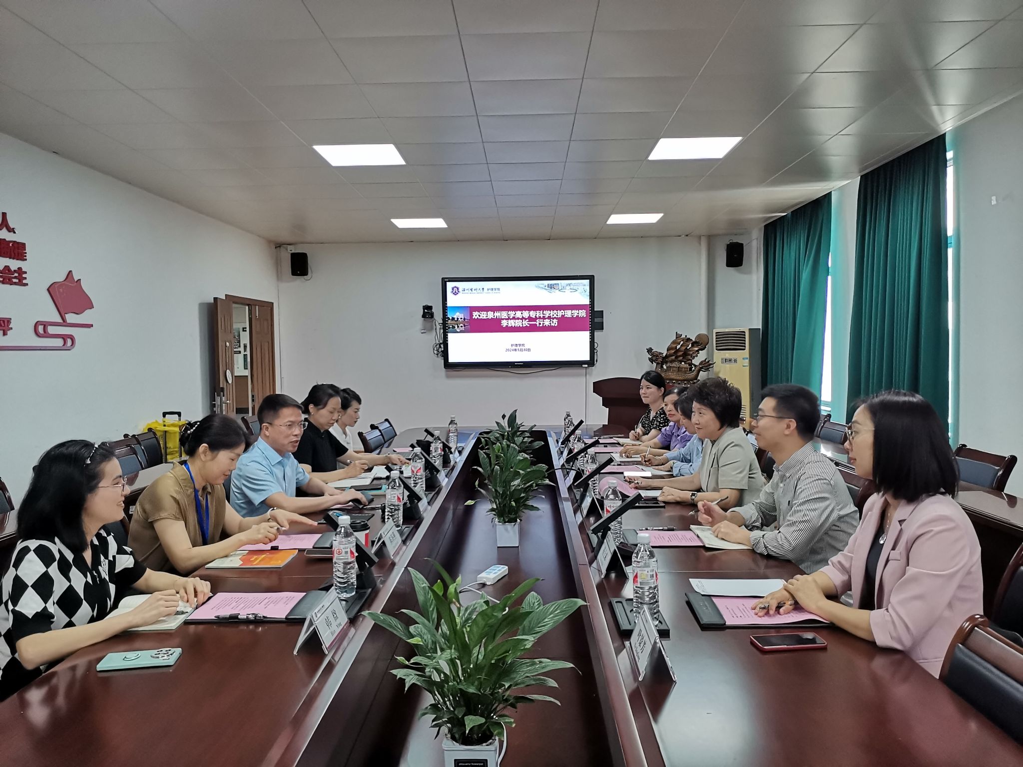5月30日,泉州医学高等专科学校taptap点点体育院长李辉、副院长彭金、教务科科长杨来士、护理专业带头人张月珍、实验中心主任叶景芳一行来院访问交流。taptap点点院长蔡福满、原教学办主任孙海琴、儿科护理学教研室副主任陈海燕、实验室主管王一婷等在7C306热情接待了客人。