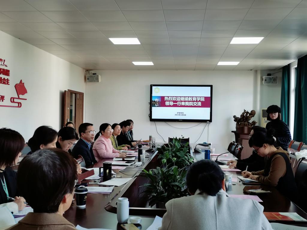 3月6日下午,继续教育学院院长王世泽、副院长邵凯隽以及教务教学科室相关负责人来taptap点点讨论交流。学院院长蔡福满、分管教学副院长杨晔琴、各教研室主任、课程授课老师、教学管理人员参加了交流会。交流会由杨晔琴主持。