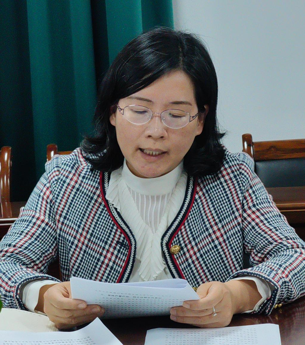 学院教工第二党支部书记、基础教研室主任吴永琴作表态发言,从廉洁自律考察、廉洁知识教育、廉洁文化建设、廉洁风险排查等方面谈如何建设清廉科室、清廉支部。学工办主任张婧婧围绕“聚焦‘高站位’,深化打造清明政治生态”“聚焦‘高标准’,推进实现清晰权力运行”“聚焦‘高品质’,营造浓厚清新廉洁文化”三方面谈清廉科室建设思考。