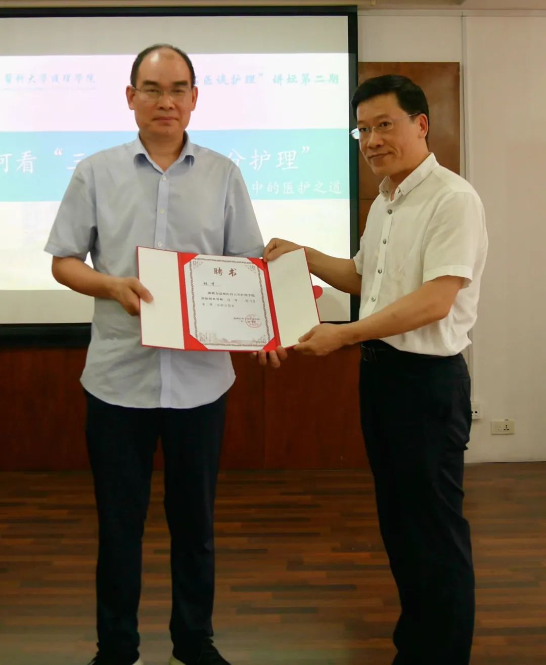 6月17日下午,taptap点点体育在茶山校区同心楼六楼会议室开展了名医谈护理第二期“如何看‘三分治疗,七分护理’——烧伤创面修复中的医护之道”专题讲座。主讲人为温医大附一院烧伤伤口中心主任林才老师,党委书记李旭东老师,党委副书记陈素云老师出席此次讲座,taptap点点学生积极参与。讲座正式开始之前,学院特聘林才老师为taptap点点体育创新创业导师,学院党委书记李旭东老师为潘教授颁发聘书!