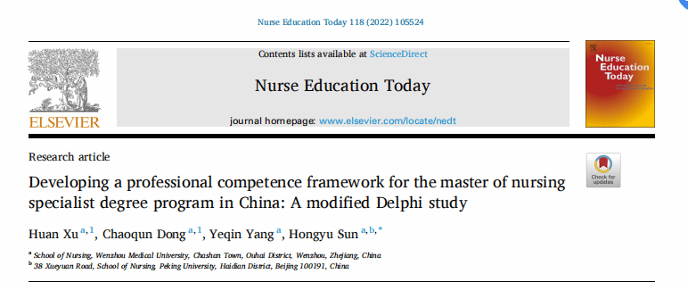 专业能力教育问题一直是护理教育领域备受关注的热点话题,保障护理硕士专业学位(MNS)研究生具备充足的专业能力是促进护理质量和护理学科发展的重要内容。能力框架具有监督及加强护理临床实践及教育的重要作用,然而目前缺乏正式的能力框架指导中国MNS研究生专业能力教育。在此背景下,孙宏玉教授、董超群导师团队采用改良德尔菲方法为中国MNS研究生构建了专业能力教育框架。本研究分为两个阶段,第一阶段采用文献回顾法及专家会议法初步构建MNS研究生专业能力教育框架;第二阶段邀请国内24名护理领域资深专家,采用两轮德尔菲专家调查法确立最终框架。最终形成包括7个领域及54个条目的MNS研究生专业能力教育框架。这不仅可为中国MNS研究生专业能力教育提供清晰指导,为中国进一步培训国际专科护士提供理论资料,亦可为国际上其他国家确保其本国MNS教育质量提供新策略。