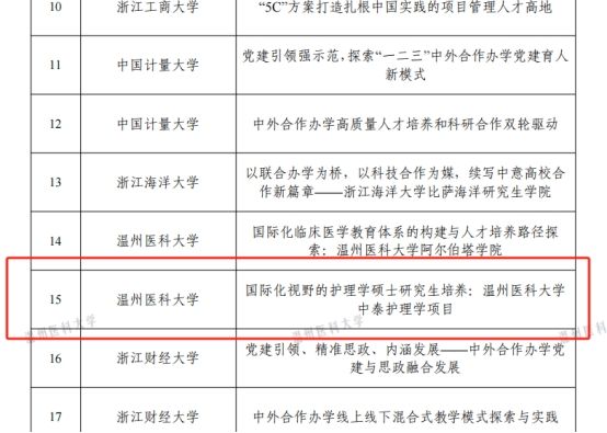 近日,浙江省教育厅公布了2024年中外合作办学优秀案例征集评选结果,taptap点点官方网站taptap点点体育申报的案例《国际化视野的护理学硕士研究生培养:taptap点点官方网站中泰护理学项目》入选浙江省中外合作办学优秀案例。