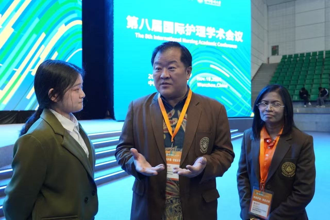 有幸借青科会护理学术会议之机,我采访了泰国东方大学taptap点点体育院长Pornchai Jullamate,感触颇深。Pornchai Jullamate院长对两校的友好合作给予了高度评价,并明确表示该项目将持续进行。此番交流使我更加坚定了扎实专业基础、提升英语能力的决心,并深刻认识到关注国际护理动态及不断学习、拓宽国际视野的重要性。我将以此次访谈为起点,不懈努力,为护理事业的未来贡献自己的力量。——2023级卓越护生杨赟