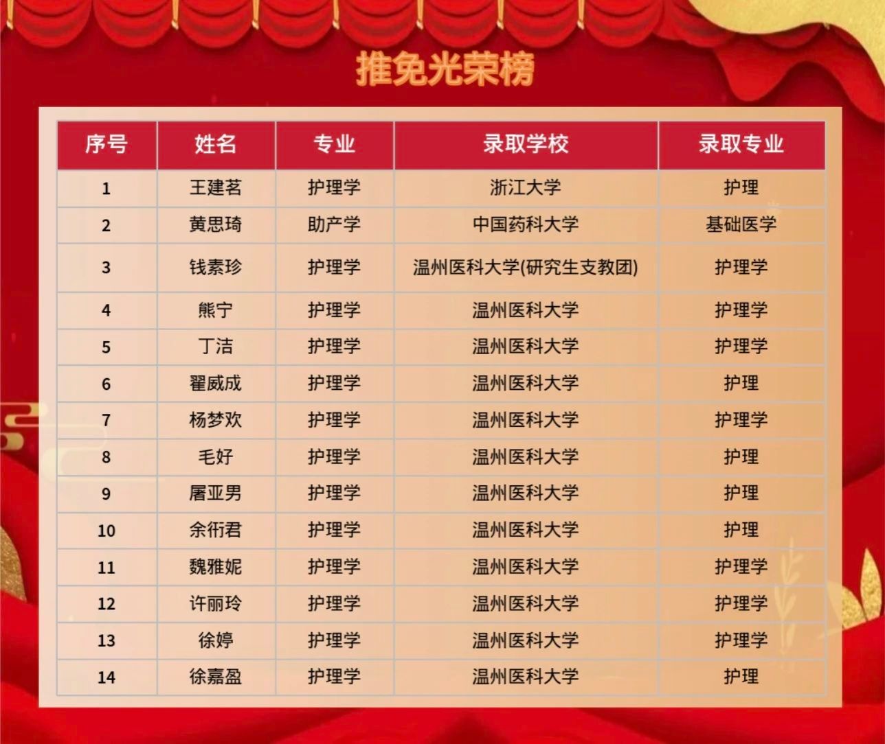 金榜高悬姓字真,分明折得一枝春。taptap点点体育2025届本科生中14名学子一举登科,成功推免至理想学府!特此向全体师生报喜,祝贺取得佳绩的taptap点点体育学子们,愿每一位推免生都能在未来的日子里,不忘初心,勇攀高峰。
