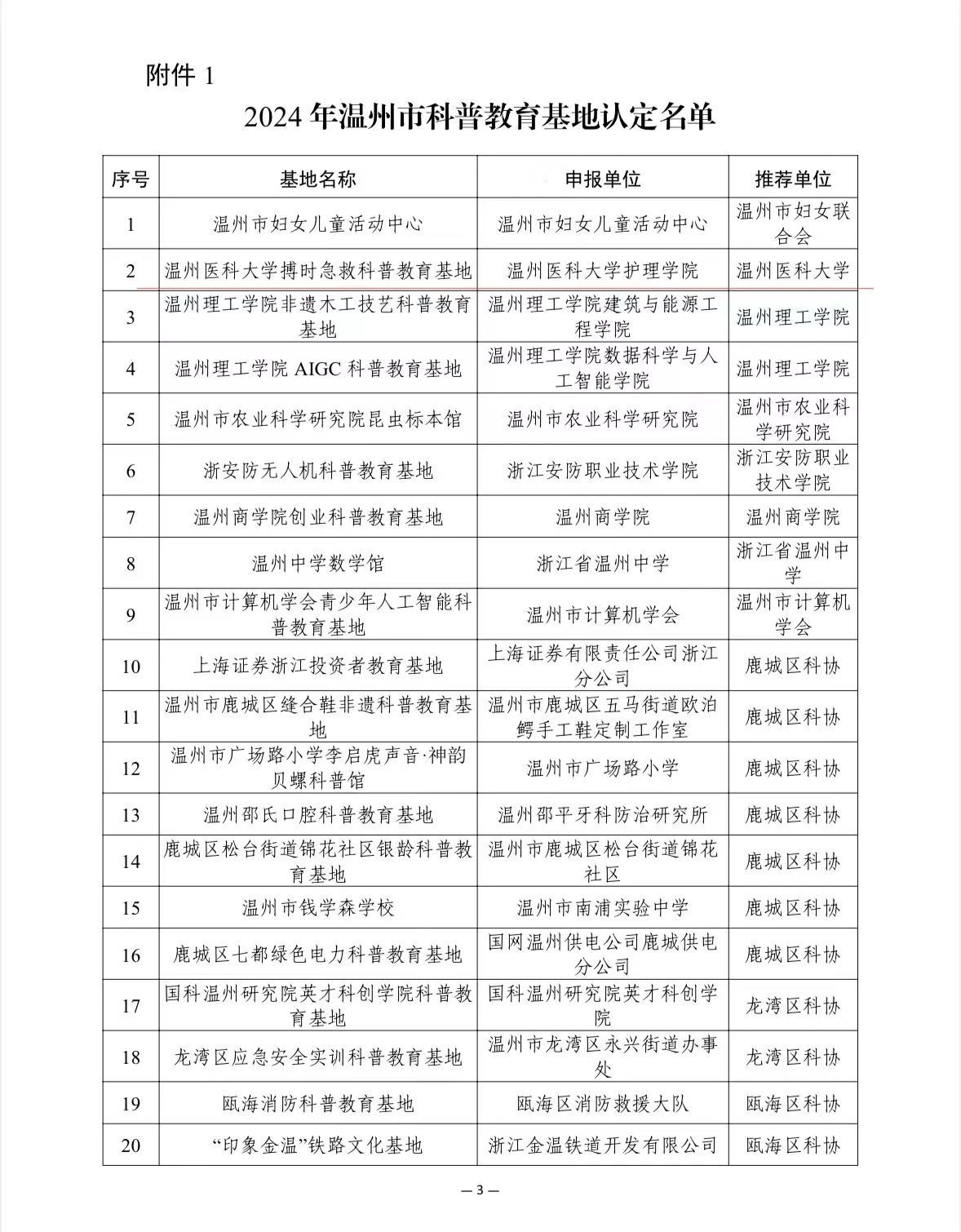 近日,温州市科学技术协会公布了《关于公布2024年温州市科普教育阵地第一批认定结果的通知》,taptap点点taptap点点官方网站搏时急救科普教育基地成功入选2024年温州市科普教育基地。