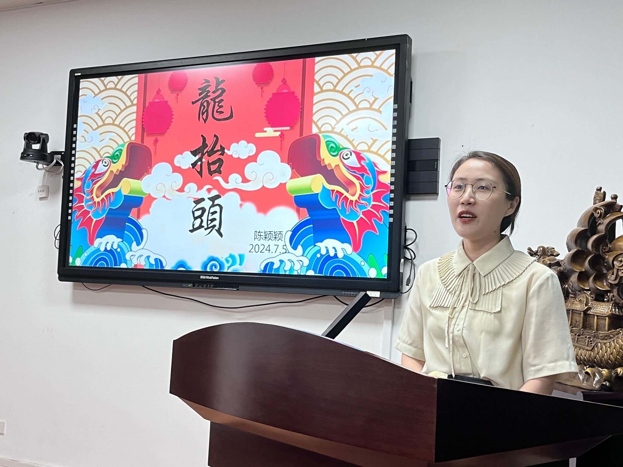 陈颖颖老师分享了“二月二龙抬头”传统节日,从什么是龙抬头,龙抬头的由来,龙抬头的习俗三个方面展开介绍,二月二龙抬头预示春天的到来,象征着吉祥如意、风调雨顺。这一传统节日代表着新的开始和希望,人们通过祈福活动表达对未来丰收、平安和健康的期待。