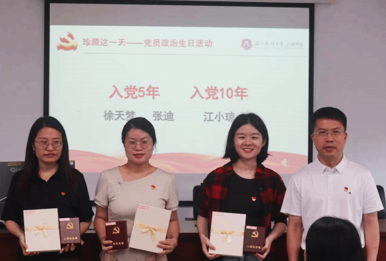 为表彰先进,激励后进,学院领导特别为入党5年、10年、15年和20年的教师党员颁发了纪念章,以此纪念他们不忘初心、忠诚履职的宝贵岁月。这一温馨而庄重的环节,让在场的每一位党员都感受到了党组织的关怀与温暖,也更加坚定了大家为党和人民事业奋斗终身的信念。