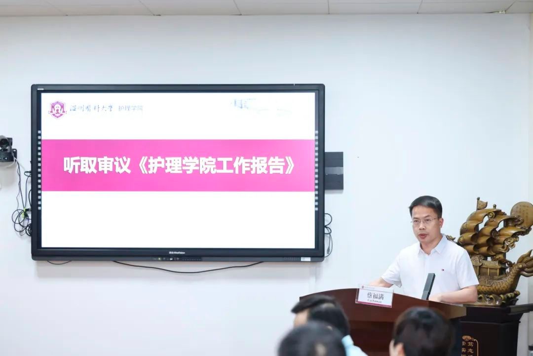 蔡福满表示,希望全体教职工弘扬温医大护理人的责任担当,牢牢抓住新时代高等教育改革发展的历史机遇,接续奋斗、砥砺前行,努力打造国内一流、有一定国际影响力的应用研究型学院,在奋进中国式现代化新征程上谱写学院高质量发展的新篇章!