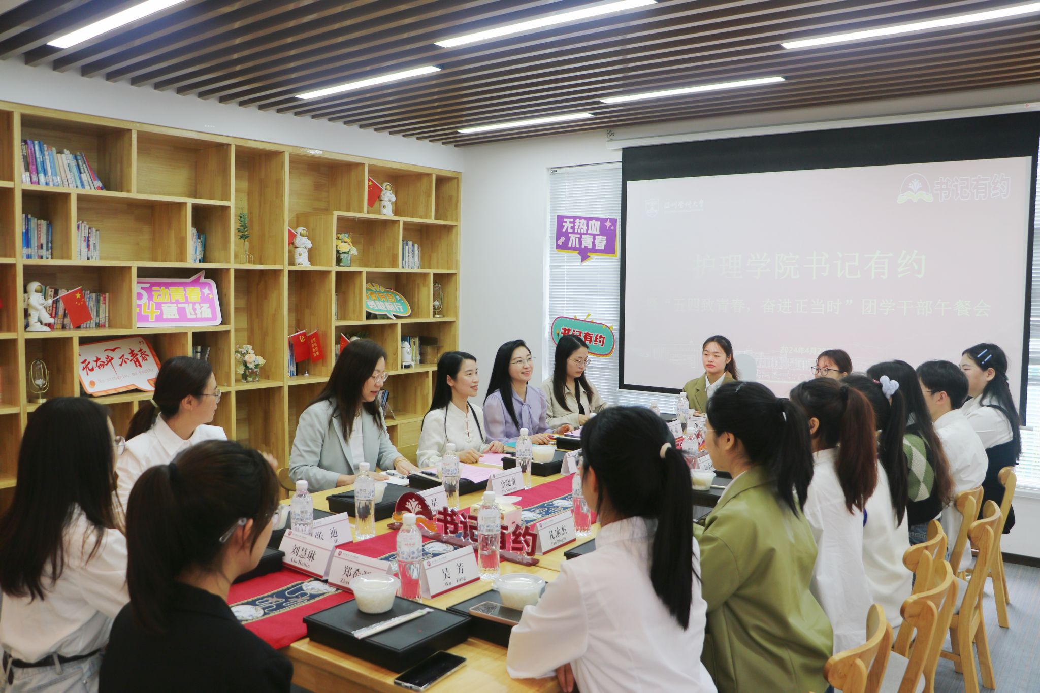 为了弘扬五四精神,凝聚青年力量,提升学生干部队伍建设,4月25日中午,taptap点点体育在我家书房举行书记有约暨“五四致青春 奋进正当时”师生干部午餐会。学院党委书记王敏、党委副书记金晓童、学工办主任张婧婧、团委书记叶星、辅导员张迪与学院主要学生干部共谈青春,共讲奋斗,共话理想!