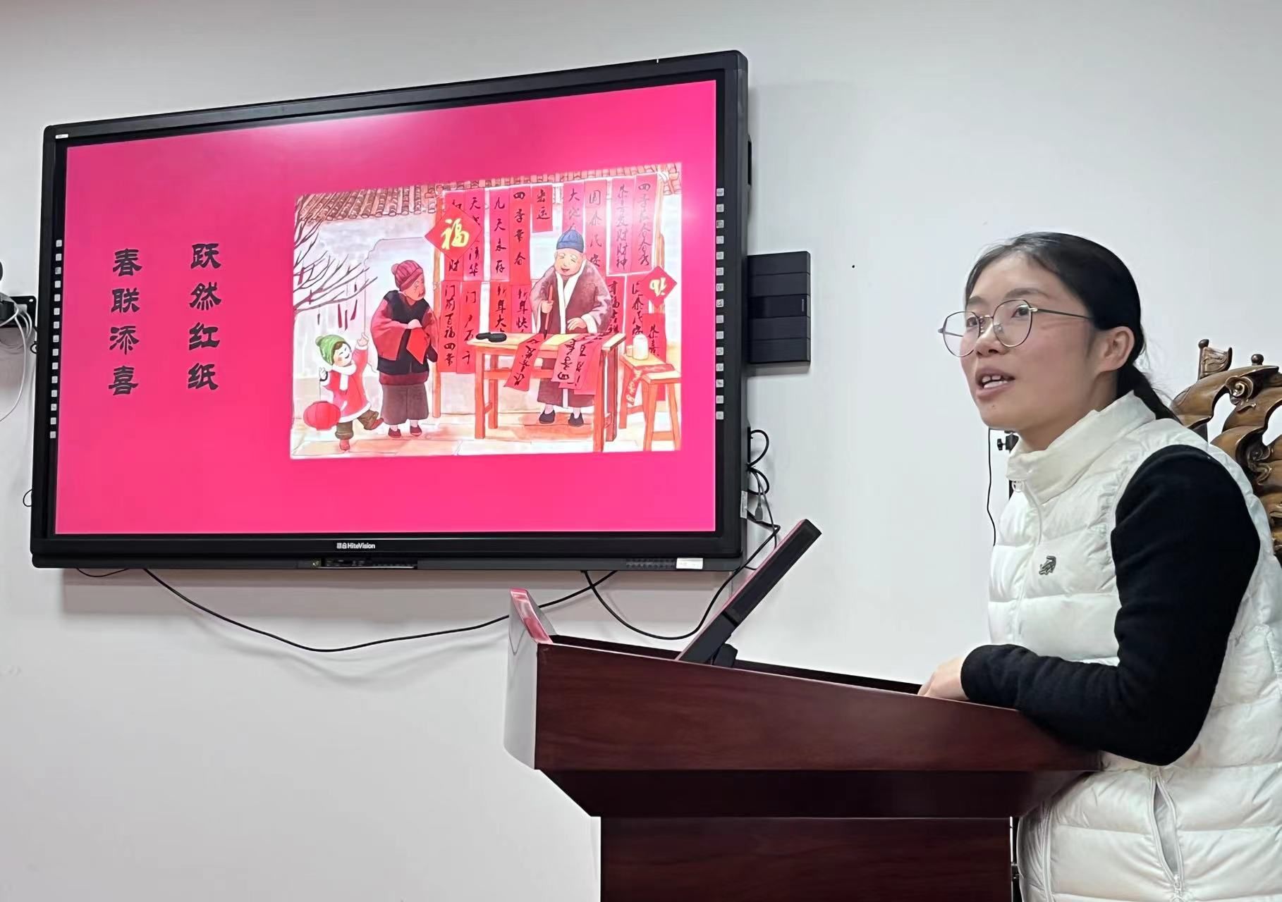 江仕爽老师带来《春联》的分享,春联是中国传统文化中独特的艺术形式,具有祝福和表达情感的功能,她以细致的语言分析了春联的历史渊源和发展变化,让大家感受春联的艺术魅力和文化内涵。