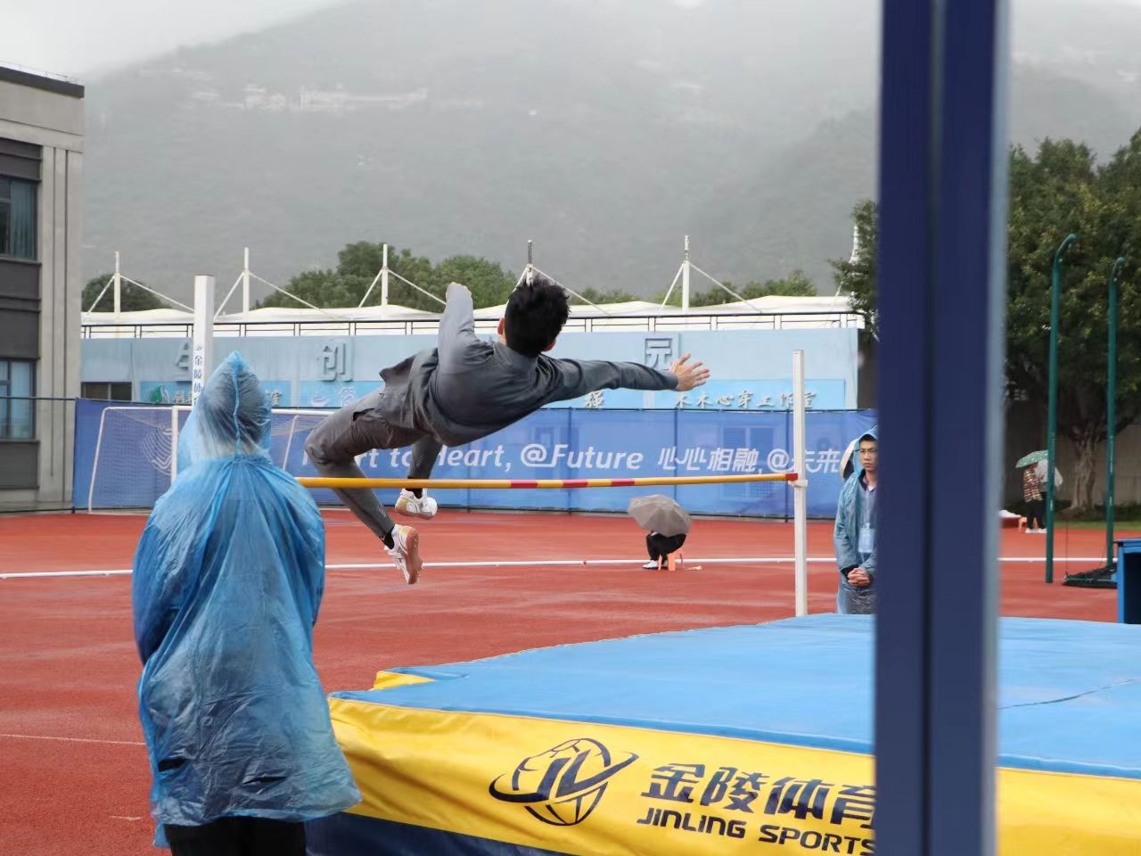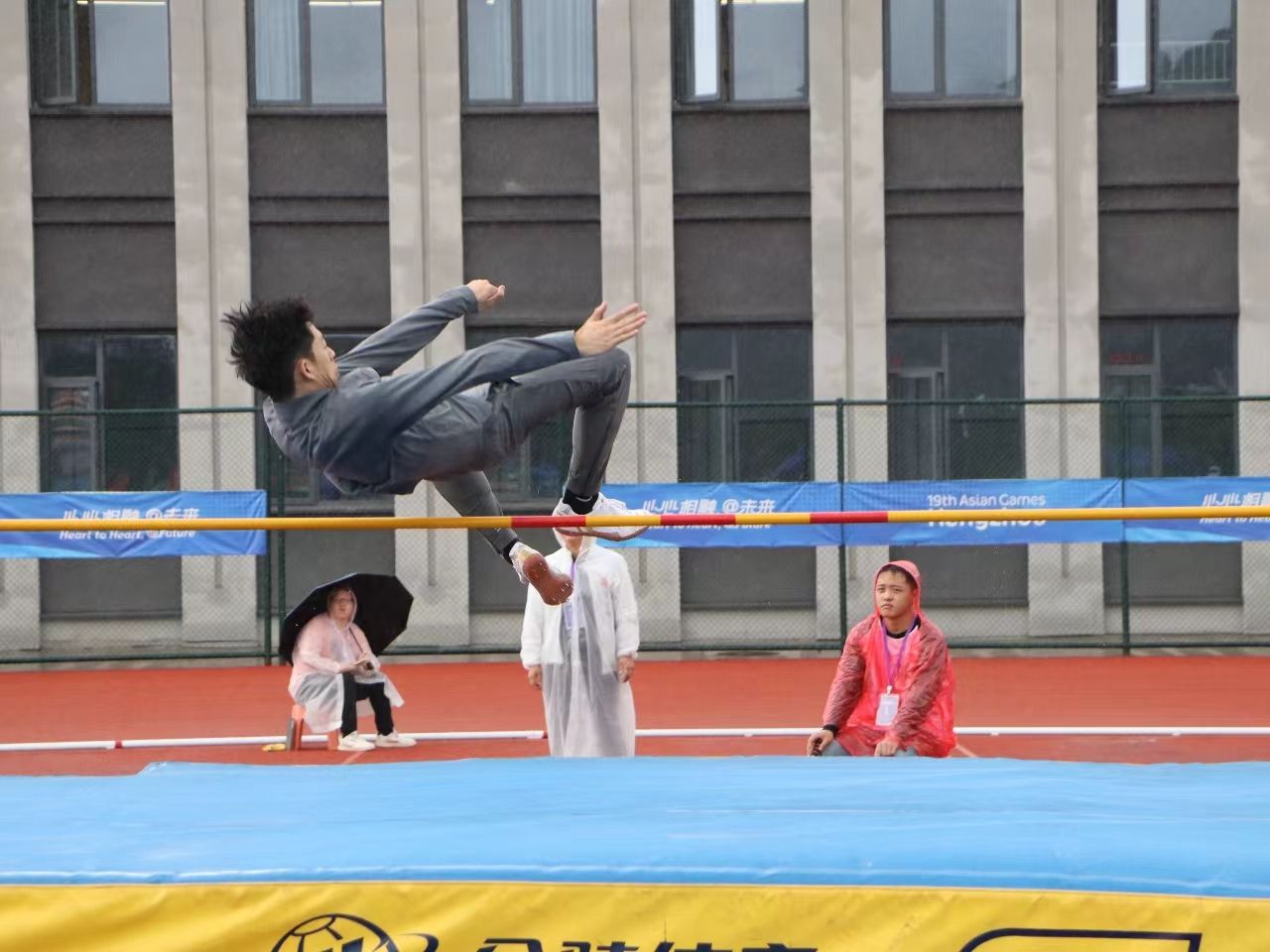 邬易航同学在比赛中展现出了坚韧的毅力和顽强的拼搏精神,克服了各种困难和挑战。他通过精确的起跳和优美的动作,成功跃过了高度,展现了出色的技术和力量。