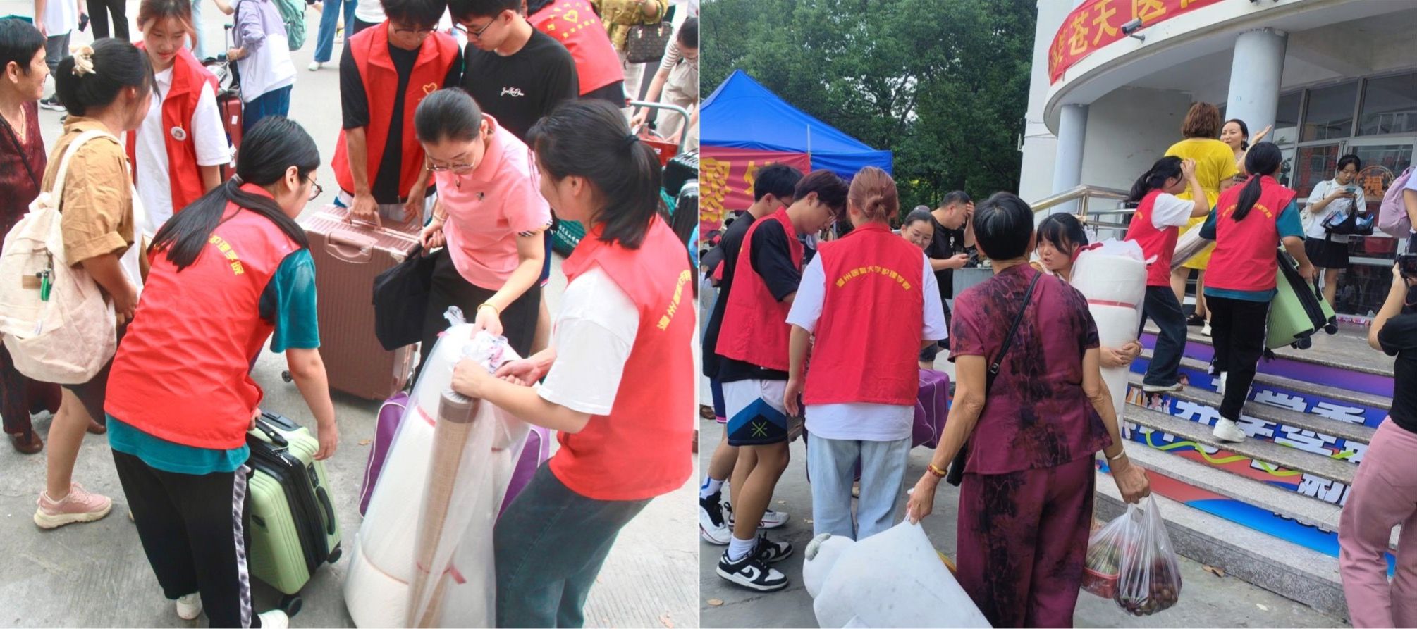 学校里随处可见白鸽志愿者的身影。他们不断接过新生手中的行李,通过摆渡车或人力的方式帮助新生搬运,指引新生到相应宿舍楼进行报到。现场有条不紊,井然有序。志愿者们一路上倾听新生对大学生活的疑惑,并耐心解答。他们用灿烂的微笑、饱满的热情和周到的服务为迎新工作保驾护航。