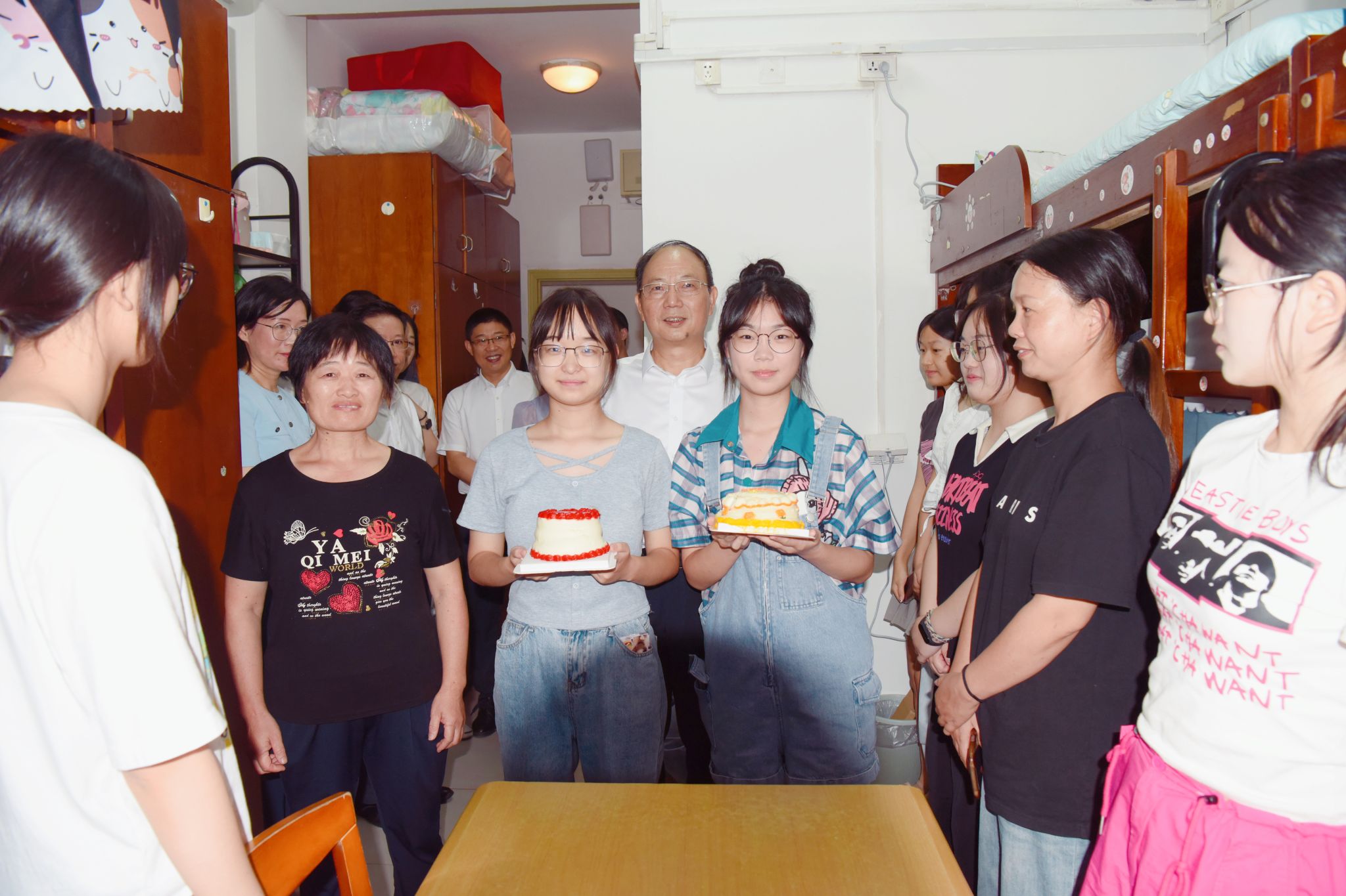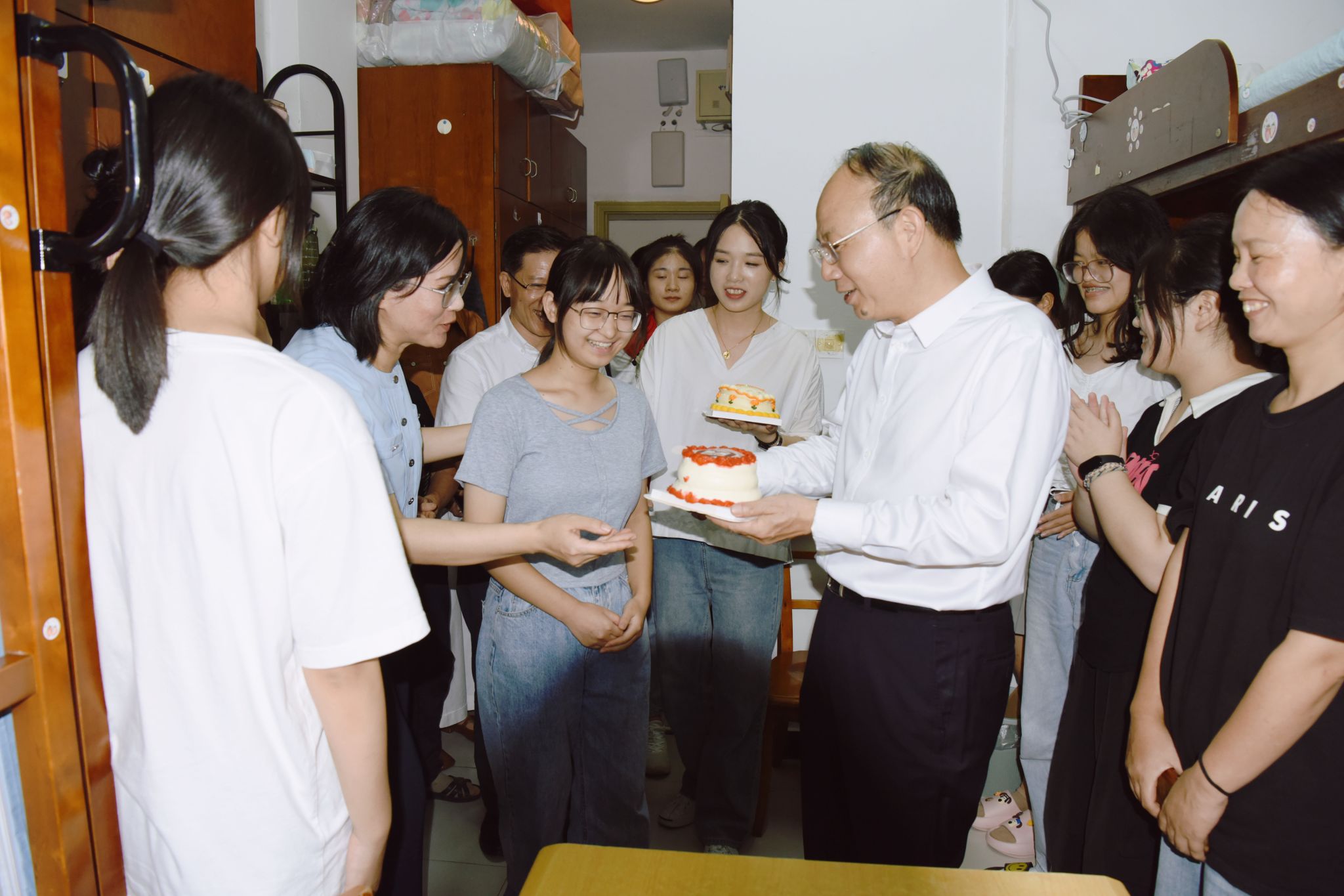 校党委吕一军书记为报到当天过生日护理新生送上了暖心关怀,为她们过了一个难忘而有意义的“十九岁生日”。在谈话了解期间,吕书记分别从学习的重要性、锻炼的必要性和精神的满足性为同学们提出了大学生活的三大目标,勉励同学们尽快适应新生活,加强专业认同感。最后,吕书记祝福新生们万事胜意,学业有成,多方发展,全面成长。