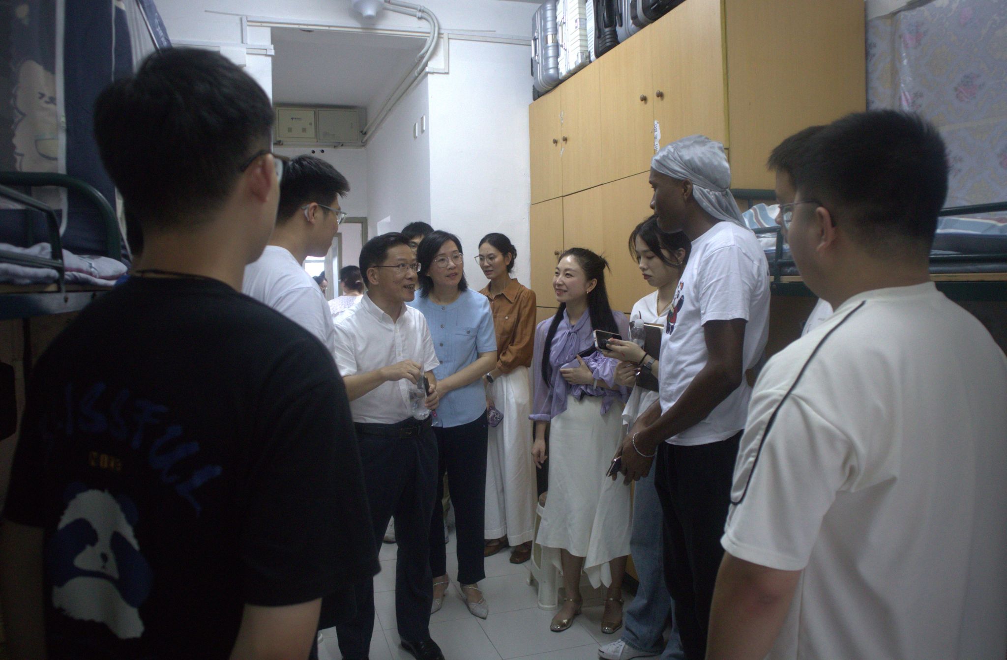 学院党委书记李旭东老师和学院党委副书记陈素云老师带领一行走访慰问研究生和本科生新生宿舍,领导走进新生寝室,亲切询问同学们初到校园的感受,关怀同学们路上的行程安全,让同学们感受到家一般的温暖。同时,李书记也勉励新生在大学期间,不断完善知识体系,巩固护理专业思想,扩大视野。养成勤奋好学的习惯,早日为温医护理建设做出自己的贡献。