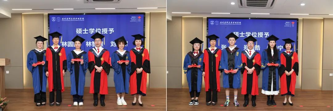蔡福满院长、尹志勤教授、陈瑜导师为在场所有毕业生拨穗并颁发校友荣誉证书。