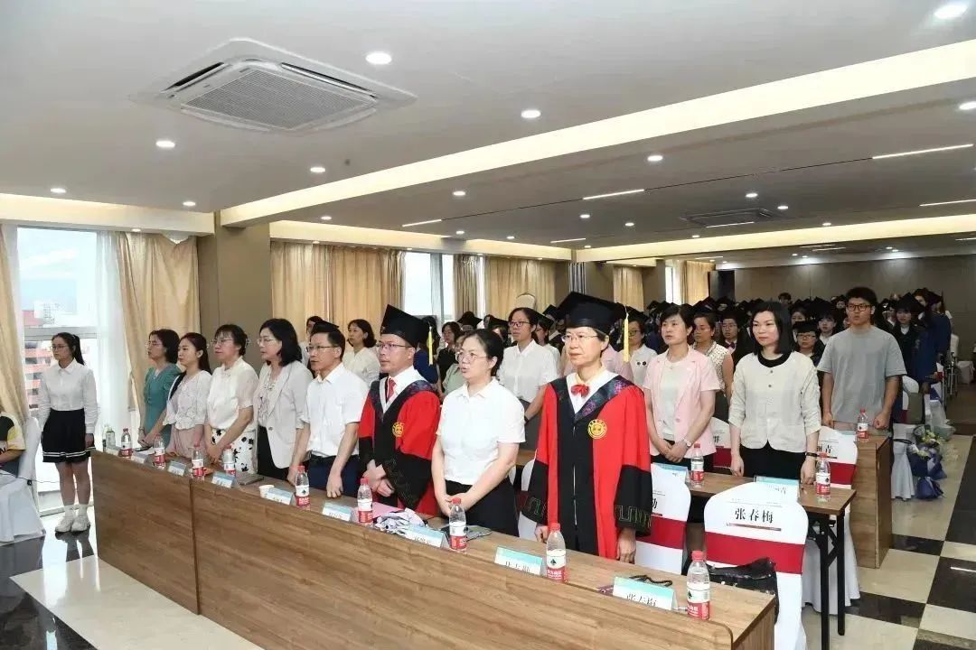 典礼伊始之际,奏唱国歌。院长蔡福满致辞,代表学院对毕业生圆满完成学业表示祝贺,并提出三点希望:一是希望同学们守正创新,坚定理想信念。要将个人追求融入到祖国的大我、人民的大我,融入到卫生健康事业的宏伟蓝图之中,厚植家国情怀,坚守护理初心。二是希望同学们自信自强,从容应对变局。要坚守敢为人先、勇于创新的探路激情,保持真抓实干、顽强拼搏的务实品质。锻炼科学思维、提高创新本领,做一名“自信有活力,知性又优雅”的护理人,贡献护理力量。三是开拓新局,承续护理发展。牢记母校的重托,牢记老师的教诲,带着爱与责任与母校和学院一同前行,成为新时代南丁格尔精神的践行者和传播者,为祖国的大健康事业做出自己的贡献。