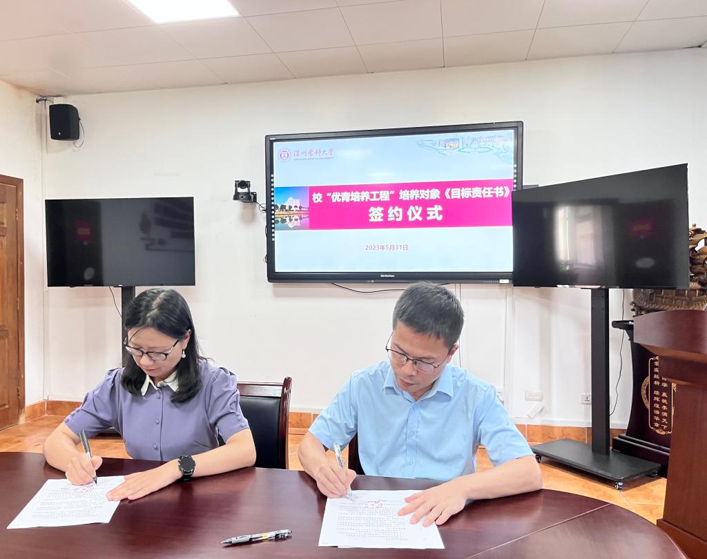 5月31日下午,学院在7C306会议室举行校“优青培养对象”《目标责任书》签约仪式。仪式由院党委书记李旭东主持,院长蔡福满及青年教师代表与会。