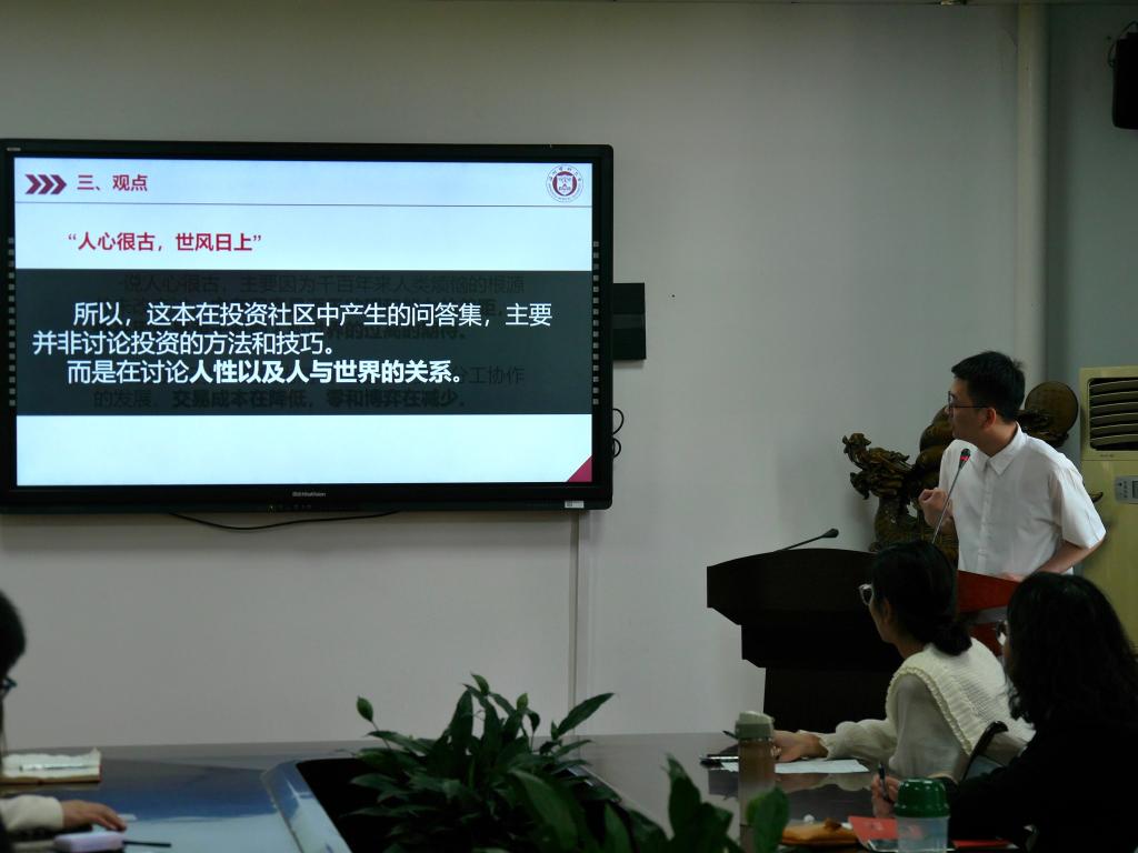 陈圣乐老师分享了《世风日上》,书中分别从“人心-心理与道德”、“人心-信息与认知”、“人心-育儿与教育”三个层面阐述了我们在面对自己内心和外部世界可采取的态度及做法,以求能与这个世界和平相处。借这个机会让我们能够透过这本书重新思考人性以及人与世界的关系。