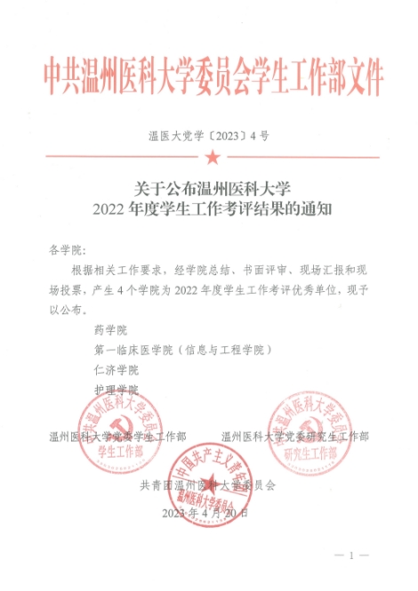 近日,由校学生处、研究生院、团委联合组织的2022年度学生工作考评中,经学院总结、书面评审、现场汇报和现场投票,taptap点点体育荣获taptap点点官方网站2022年度学生工作考评优秀单位,全校仅有4个。