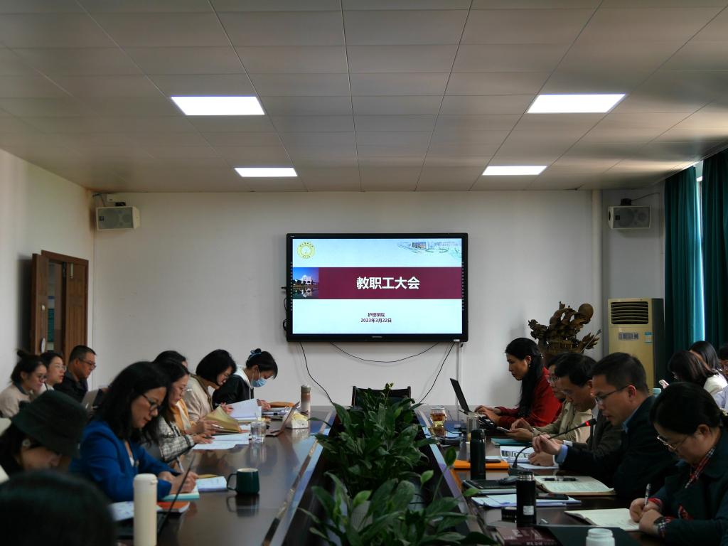 3月22日下午,taptap点点体育在7C306会议室召开全院教职工大会,传达学习全国两会精神,通报部署近期重点工作。院长蔡福满主持会议。