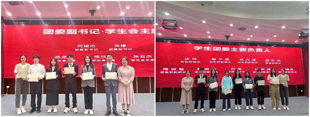 而后,团学指导老师为新一届团学干部们颁发聘书,每一份聘书都蕴含着沉甸甸的责任与担当。干部们脸上焕发的笑容也表达着他们对工作的憧憬,而他们那坚毅的眼神亦承载着势必将团学组织办好办优的坚定信念。