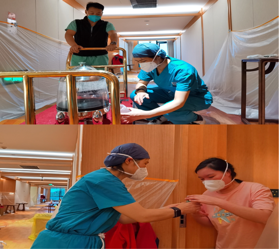 在医院党委书记褚茂平为首的领导们的关心与支持下,组织了以“抗疫同行,齐心守沪”为主题的“五一云联欢”活动、以“关爱护士队伍,护佑人民健康”为主题的国际护士节“云上慰问”特别晚会,线上的节目精彩纷呈,感人肺腑,让身处他乡的队员们也感受到了浓浓的节日仪式感和满满的归属感,很大程度上舒缓了队员们高强度的工作压力,增进了彼此间的感情。