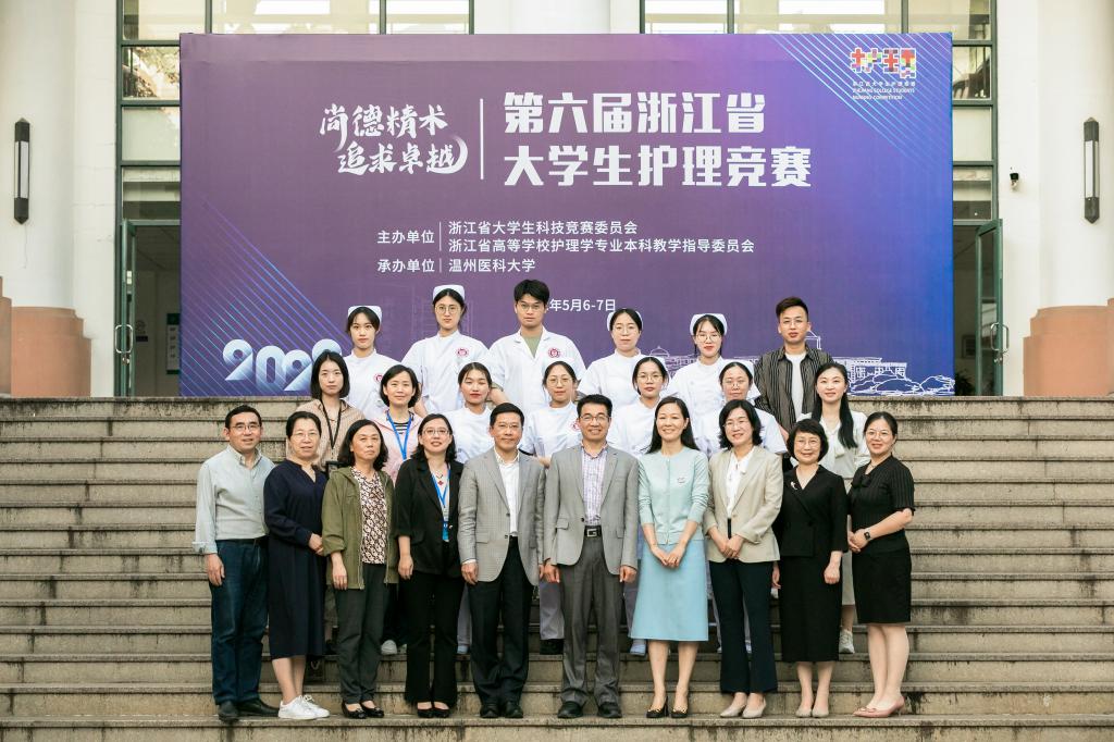 比赛当日,浙江省高等学校护理学专业本科教学指导委员会主任委员孙秋华、taptap点点官方网站副校长曹建明,党委委员、taptap点点官方网站教务处长朱雪波,浙江大学叶志弘教授、温州市中心医院朱爱武主任,taptap点点体育党委书记李旭东、副书记陈素云、副院长杨晔琴,裁判组成员、各参赛院校领导、师生代表等参加开闭幕式。