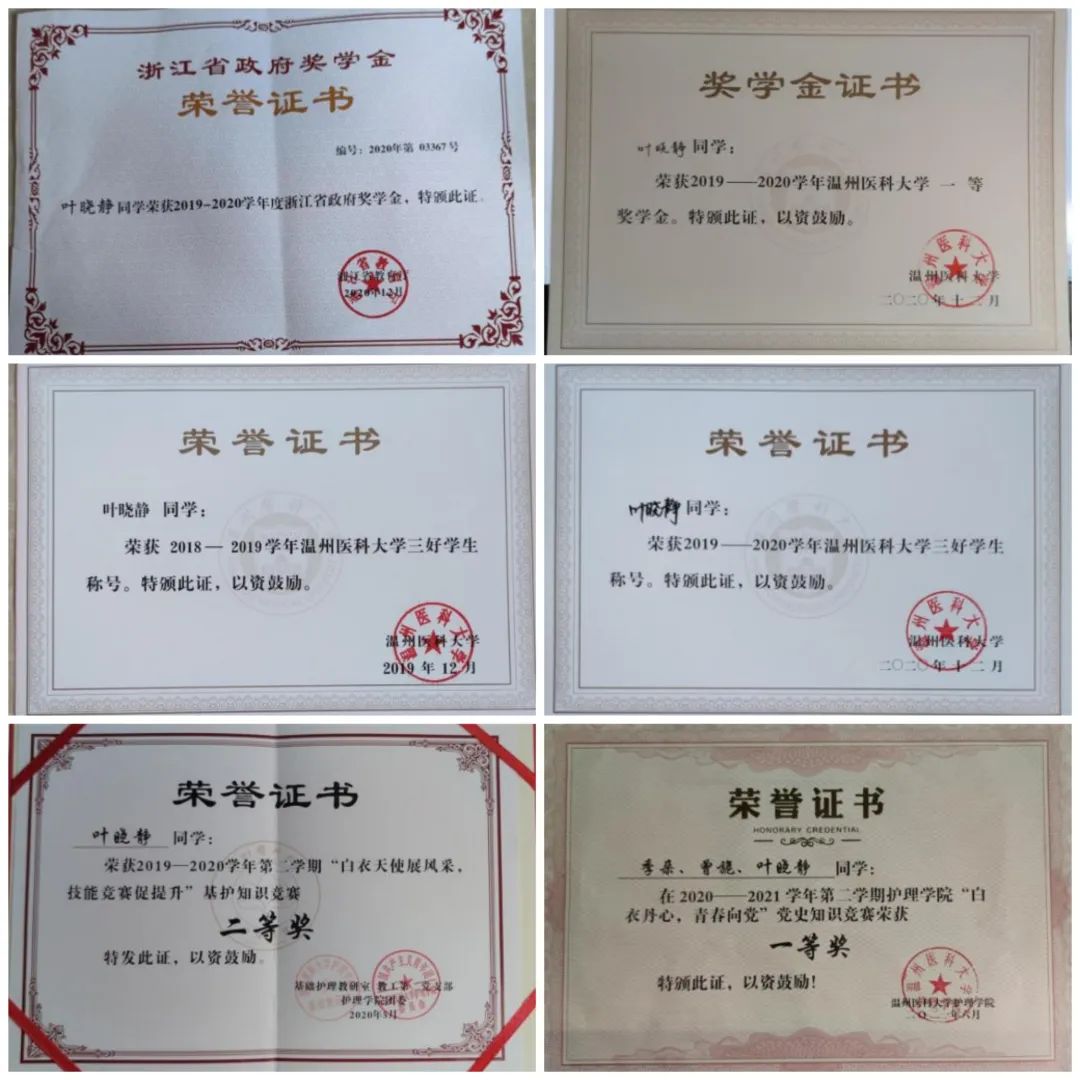暑假期间叶晓静参与了taptap点点体育杨晔琴老师的课题,虽然课题并没有给她带来荣誉,但她从中获益匪浅。“做科研的过程让我掌握了查阅文章、整理资料、协调沟通等技能”。同时,叶晓静介绍了她身边朋友的经历,参与课题往往能让自己发现未来想要从事工作的方向,激发自己发现问题的能力,探索事物存在的原因。在学习知识的同时叶晓静抓住空余时间参加了各类竞赛,全国大学生职业发展大赛校赛一等奖,校护理学科竞赛一等奖等都是她获得的荣誉。叶晓静鼓励学弟学妹们:“要趁早抓住机会,积极参加各项活动,竞赛可以让人开阔眼界,锻炼自己各项技能,认识更多优秀的人,也不用过于在意比赛的结果,因为付出就会有回报。”