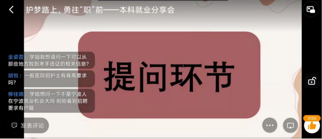 随着秋招临近,taptap点点体育就业指导服务中心于11月26日,特举办了护理本科线上就业分享会,邀请了就业于宁波市第六医院的冯佳妮学姐以及就业于taptap点点官方网站附属第一医院的赖叔意学姐,为同学们进行求职面试技能专场经验分享。