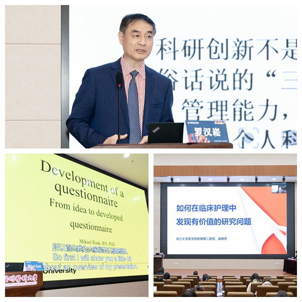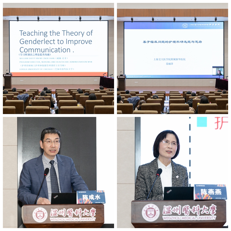 在人才培养创新专场,美国护理科学院院士、美国芝加哥洛约拉大学威廉·达菲教授提出高效的护理人员要学习性别语言理论,提升沟通技能。美国护理科学院院士、上海交通大学医学院附属新华医院护理部主任姜丽萍教授讲述了如何将临床护理问题转变为有效的临床护理科学研究问题。附属衢州医院党委书记、附属第一医院副院长陈成水教授结合临床创意实例,阐释了如何从“模仿创新”到“自主创新”。市护理学会理事长陈燕燕分享了她对护士职业发展的思考。