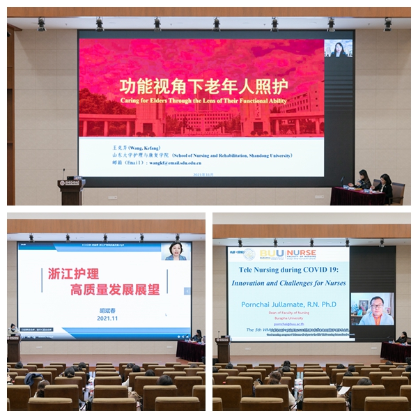 在临床护理创新专场,美国护理科学院院士、山东大学taptap点点体育院长王克芳教授就如何从“内在能力”和“环境特征”两方面入手帮助老年人幸福生活,探讨老年照护的意义。浙江省护理学会理事长胡斌春教授就如何推动浙江护理高质量发展发表了看法。泰国东方大学taptap点点体育院长彭揣·朱拉马特分享了新冠疫情期间泰国东方大学护理师生通过线上护理模式构建,服务居家隔离的新冠肺炎患者,获得政府表彰的事例。