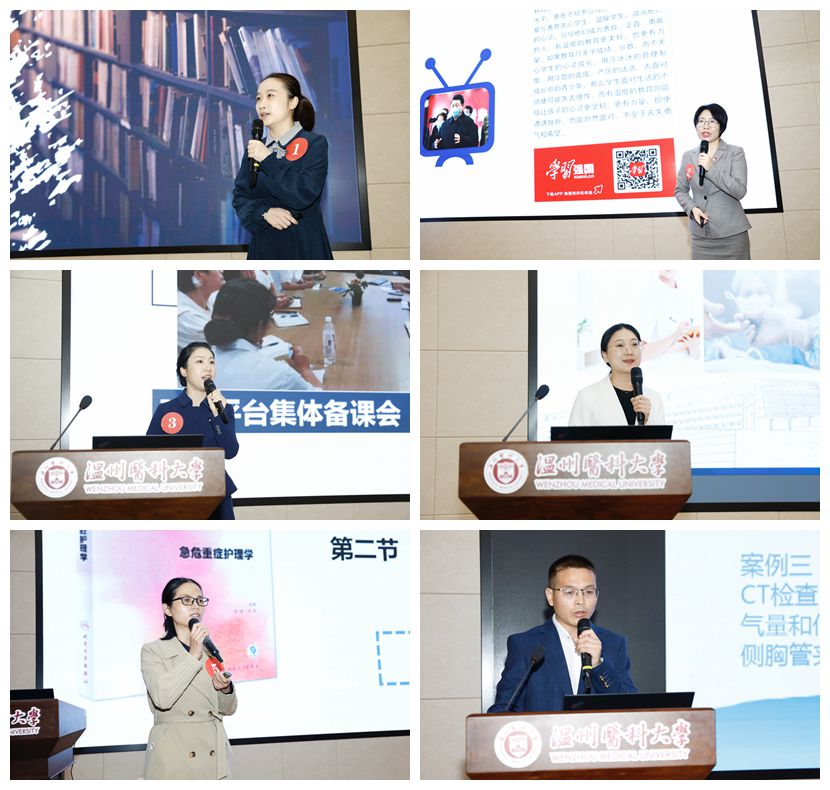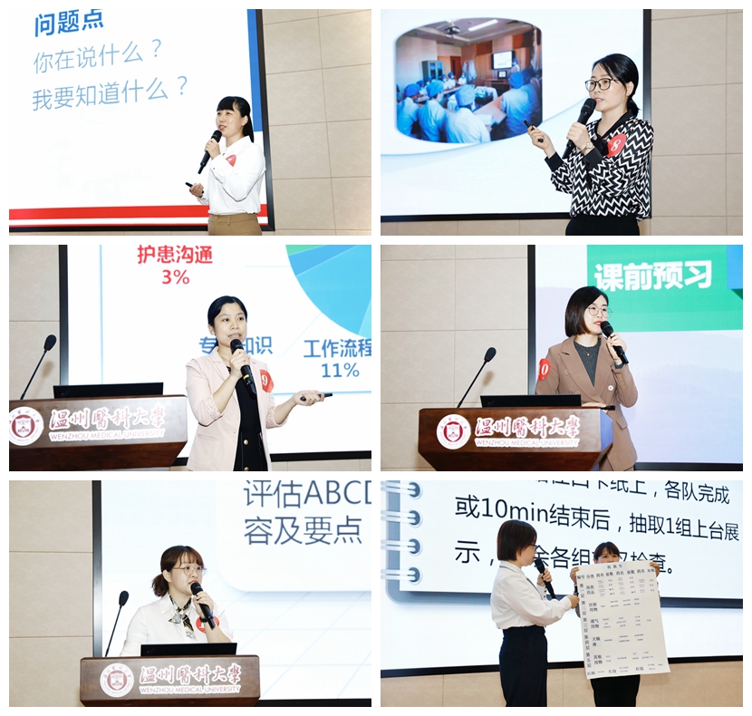 12名参赛选手结合教学大纲和教学实践,现场说明课程教学创新过程中解决教学“痛点”问题的思路、举措、效果及反思,并分析其推广应用的价值。现场,随着选手的讲解,“六顶思考帽”思维模式、“四进”服务型教学模式、“三段式”一体化教学模式、“一主体双循环”教学模式、Miller金字塔法、萨提亚模式、虚拟仿真技术、游戏法等各种模式、信息技术和方法在临床实践教学和理论教学中的运用和效用一一生动体现,启迪着与会人员不断思考,深刻体会创新的魅力。