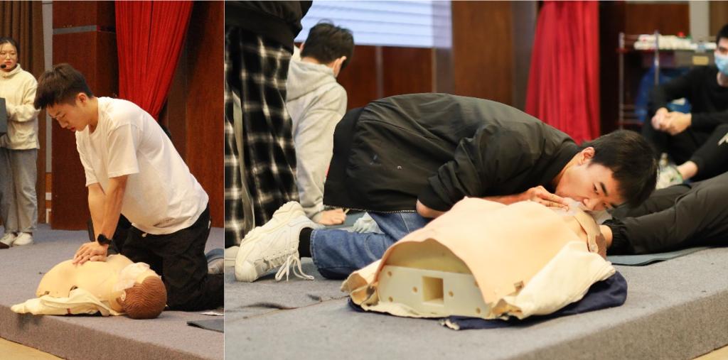 车祸现场、特大暴雨、楼梯踩踏等等,生活中处处存在危及生命健康的风险事件,急救情景演练通过模拟可能会发生的突发紧急状况,考察同学们的应变能力、救护知识和技能掌握情况。各组参赛选手不仅做到精准分析研判,在确保安全原则情况下,遵守急救与呼救并重,先救命后治伤,先重后轻等应急救护原则,有条不紊地开展心肺复苏、止血包扎、骨折处理等各项应急救护工作,得到了现场观众的热烈掌声以及评委老师的充分肯定。