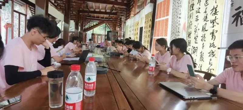 学院领导和老师在山川书院与实践队员展开座谈与经验分享,详细了解当前实践团队的情况。