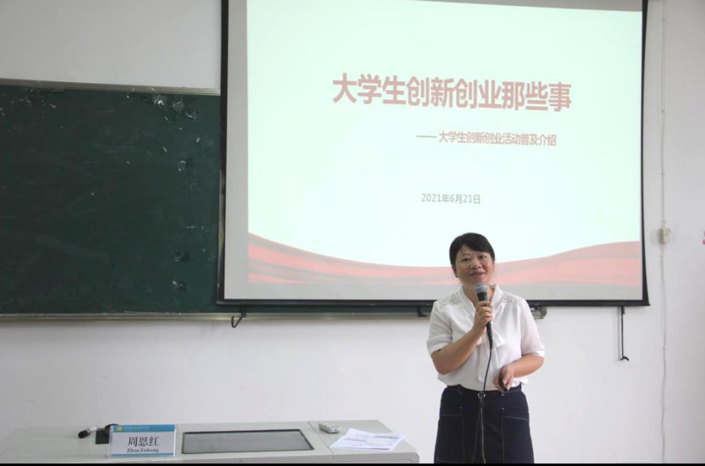 周恩红就“大学生创新创业那些事”作主题演讲。她介绍了高校学生可以参与的科研项目和学科竞赛,包括校级本专科课题、省级新苗人才计划项目、国家级创新创业训练计划项目,以及“挑战杯”创业大赛、“互联网+”大学生创新创业大赛、大学生护理竞赛等,并详细讲解了研究生可以参与的创新创业孵化项目。她将申报科研项目和参与学科竞赛相结合,以学院“博时急救”志愿服务项目为例介绍如何孵化并长期发展研究项目。