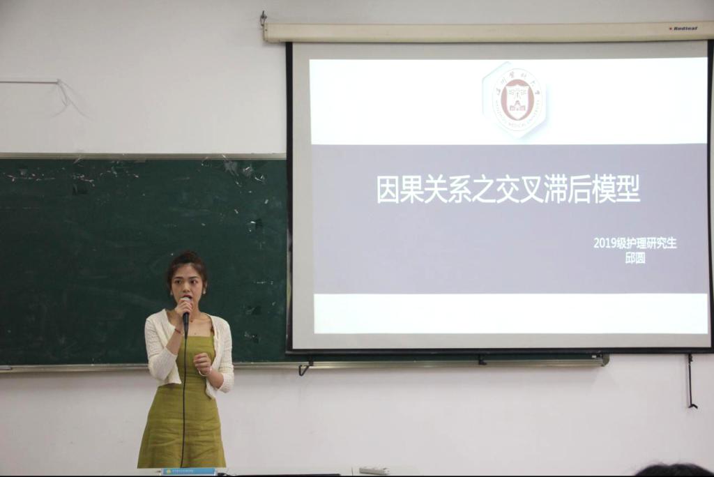 研究生梁安东和邱圆分别从自身经验,就“质性研究之Meta整合”和“因果关系之交叉滞后模型”两个主题分享。