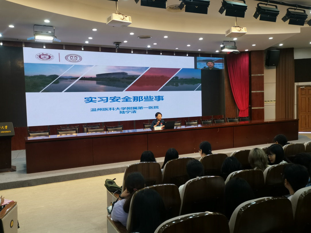 陆宁洁作题为《实习安全那些事》的讲座,她从工作安全和生活安全两个方面入手,提醒同学们在走出校园、步入社会后应注意的各项安全要点,尤其是在实习工作中,要注意手部卫生、防范锐器伤害,做好医疗垃圾分类、避免护理不良事件风险等。李斯佳也向同学们告知实习注意事项。