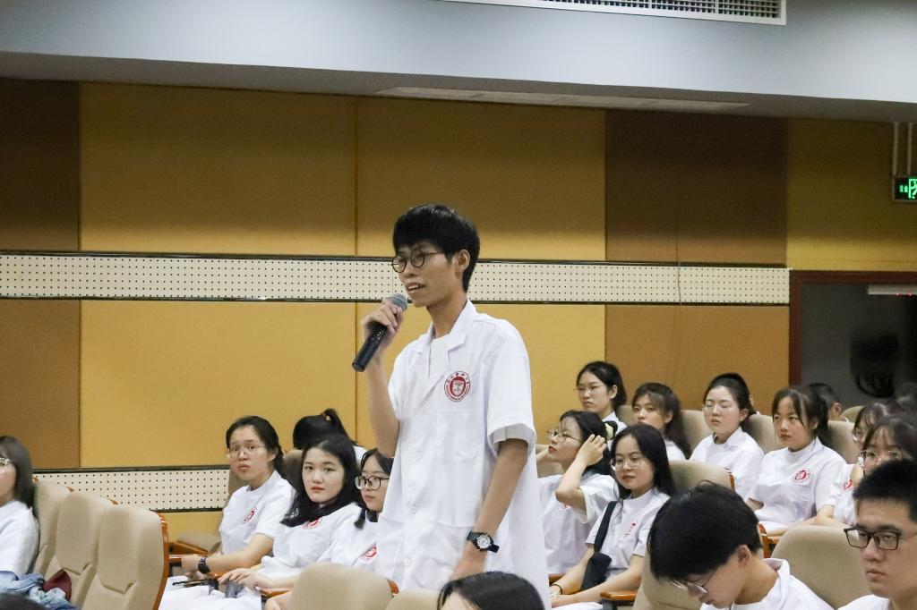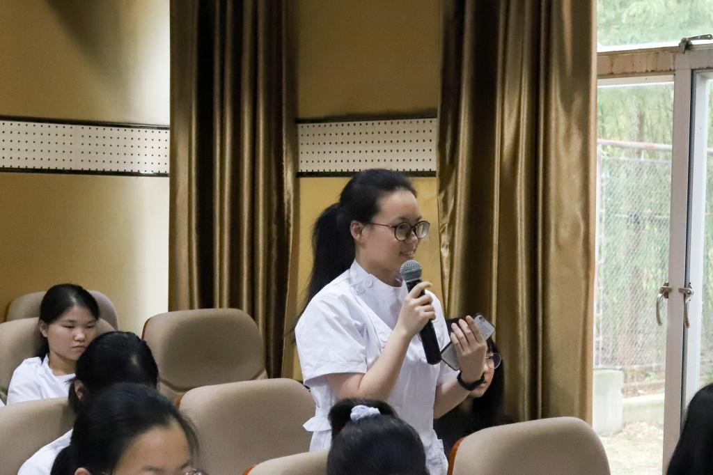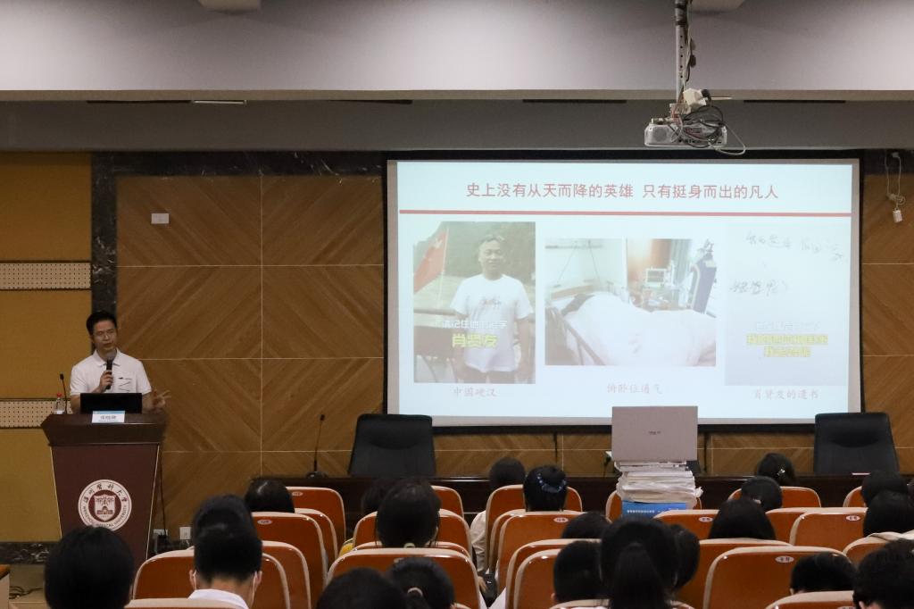 在疫情爆发之初,张晓隆老师怀揣着内心的理想与信念,带着家人的理解与支持,跟随浙江省首批抗击新冠肺炎疫情紧急医疗队,日夜兼程,奔赴武汉,支援前线。当面对紧缺的医疗物资,面对陌生的环境条件,他不忘使命,始终谨慎的执行防护操作。他与时间赛跑,全力挽救生命,与团队协作,一次又一次把病人从死亡线上拉回。他的抗疫故事让在场的每一位护理学子都身临其境,颇为触动,让我们切切实实的体会到医护人员深入一线敢为人先、不畏艰难舍生忘死的精神。
