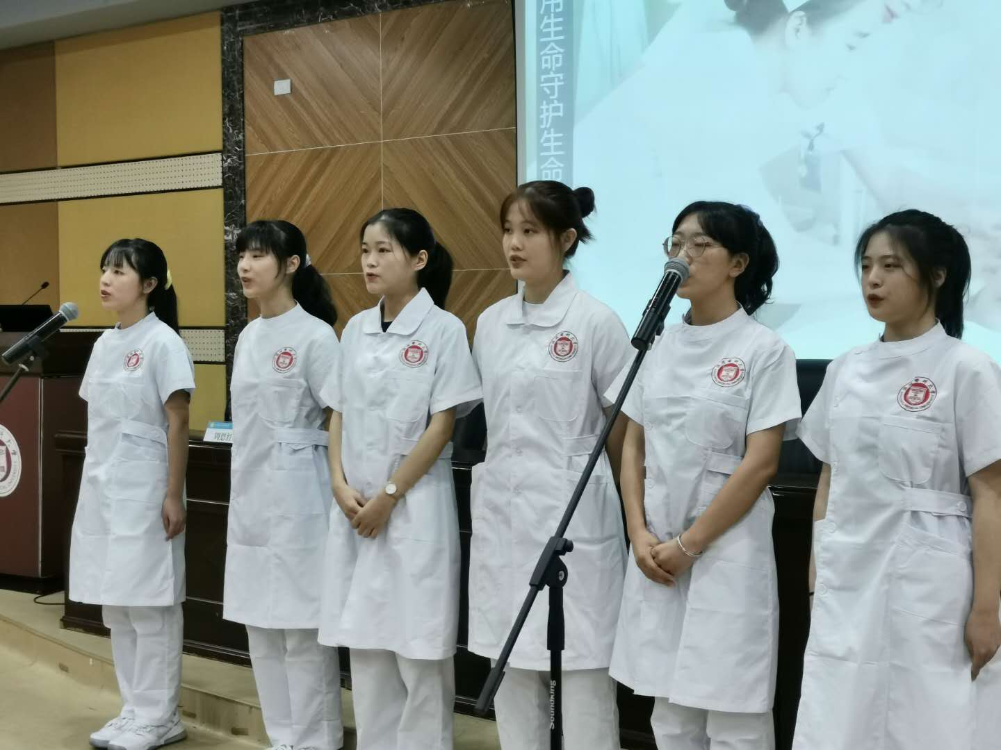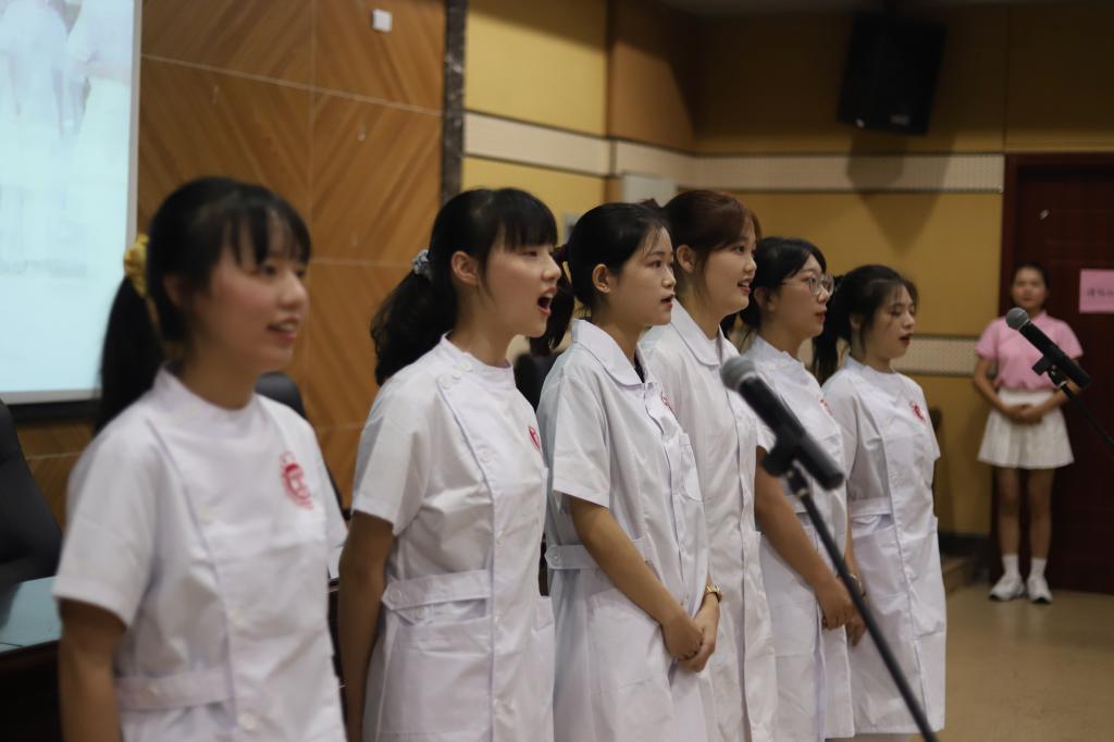 同学们入校前,是否听学姐学长说:“大学嘛,60分万岁”。然而,教师代表许芳芳老师用自己的经验告知同学们:“医学,没有60分!护士是治病救人的职业,来不得半点马虎”。她嘱托同学们要谨遵“勤勉、仁爱、慎独、求真”的院训,怀着一颗敬畏之心,在医学道路上披荆斩棘、一路向前!院学生团委书记李文佳同学作为老生代表,在学习,科研和学生工作等方面为新生分享她的一些经验与感悟。2020级助产1班新生代表倪裔文在发言中,表示刚来到校园,就感受到各位老师无微不至的关怀,如家一般的温暖,作为一名新生立下誓言“今天我们为温医骄傲,明天就要让温医为你我而自豪!”
