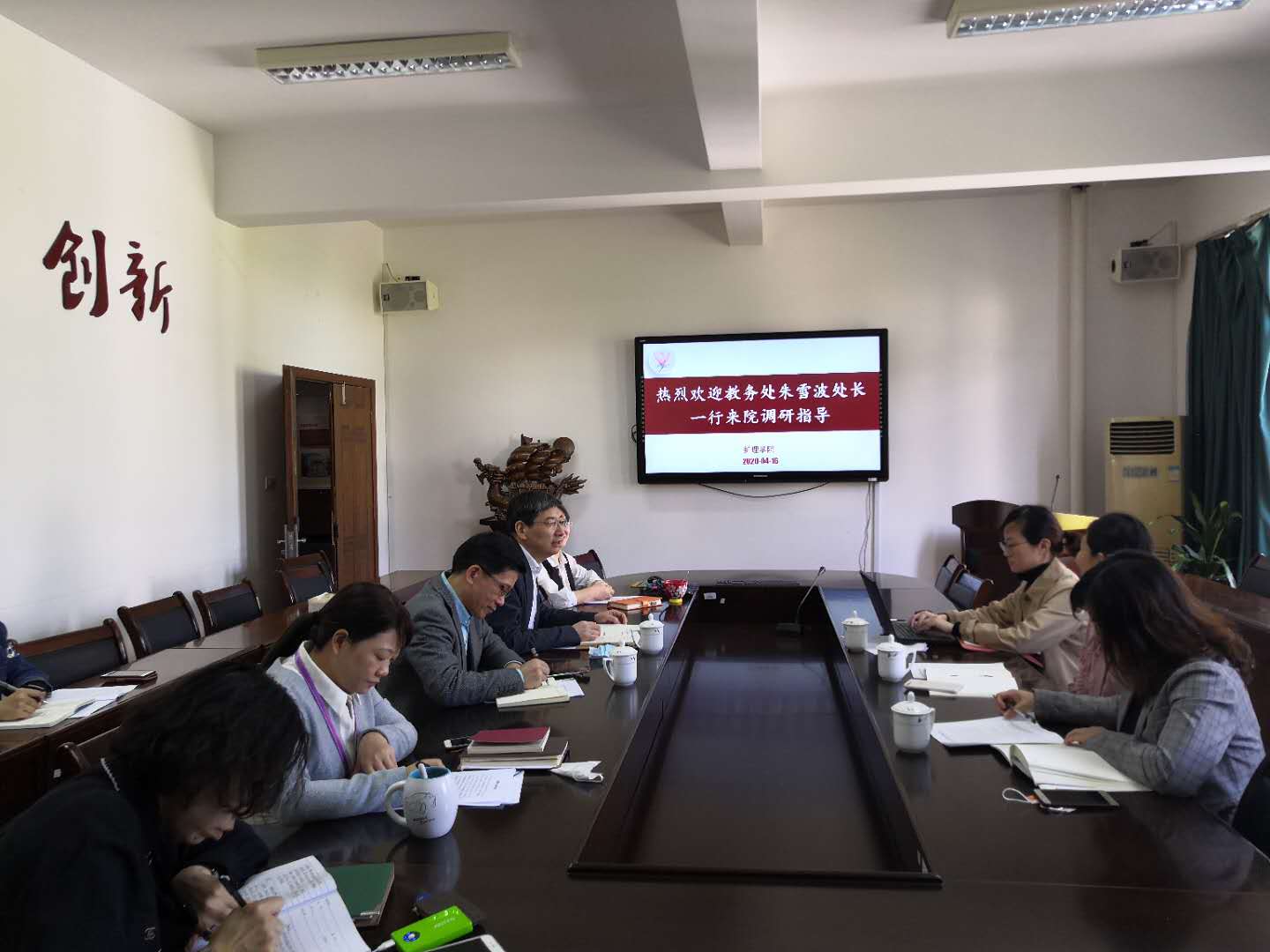 4月16日下午,校教务处处长朱雪波、副处长卢丽笋等一行3人来taptap点点调研,学院领导班子成员、各科室负责人与会,会议由学院院长陈成水主持。