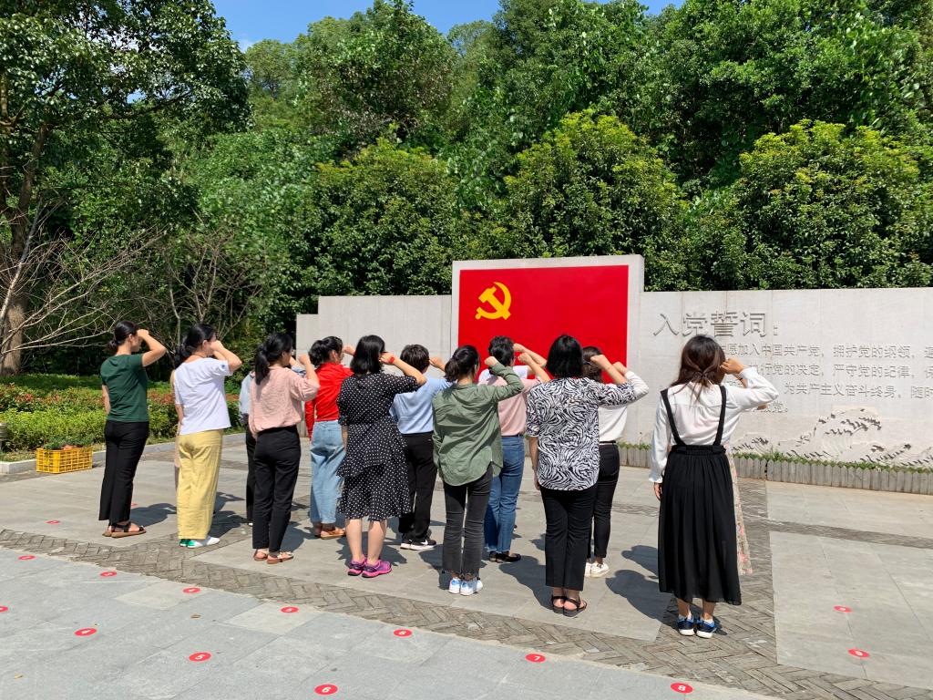 在素有“浙江延安”之称的平阳县革命老区——凤卧、山门一带,处处可见红色足迹。党员教师们走访了省一大会址旧址和浙江省一大陈列馆,馆内陈列的实物、历史资料全面详实地反映了新民主主义革命时期,党和游击队长期艰苦卓绝的斗争历程以及取得的辉煌成果。追随着历史的脚步不断前行,党员教师们深深感受到了中国共产党带领浙江人民取得的不断进步,感受到了浙江大地的沧桑巨变,他们还停留在宣誓墙前庄严地重温了入党誓词。