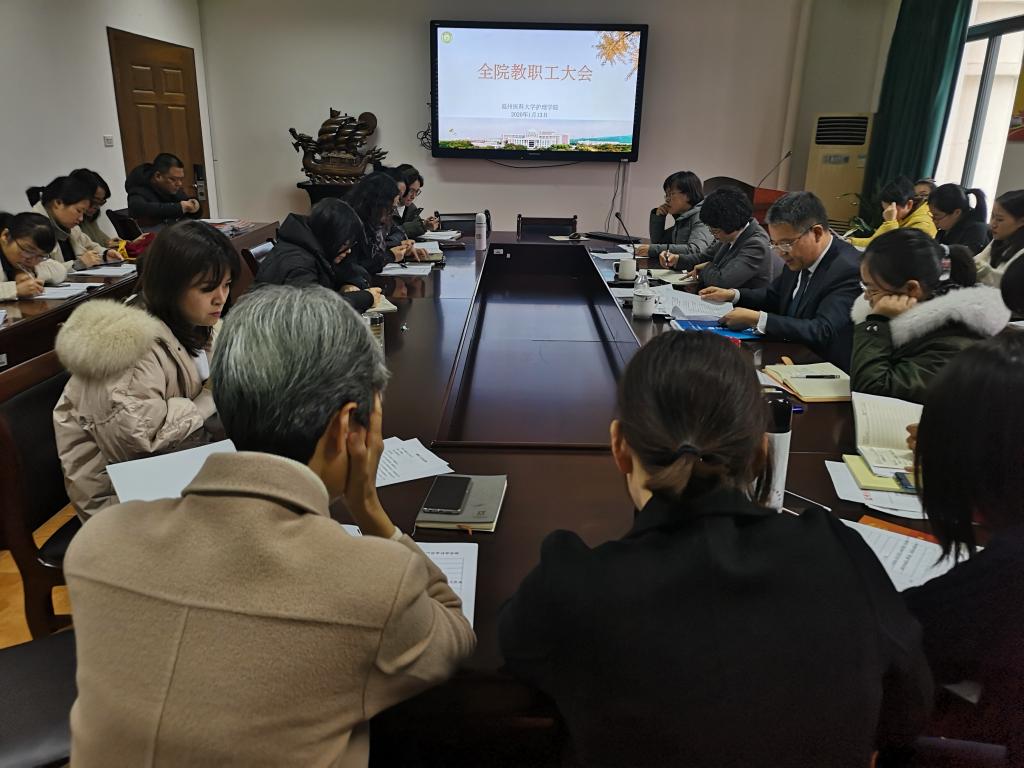 会议还传达学习了教育部护理学专业指导委员会和认证工作委员会会议精神,传达学习了学校“不忘初心、牢记使命”主题教育总结大会精神,及《浙江省全面深化高校“三全育人”综合改革实施方案》、学校《关于持续纠治“四风”正风肃纪、确保元旦春节廉洁过节的通知》等文件精神,部署了学院寒假安全稳定工作。