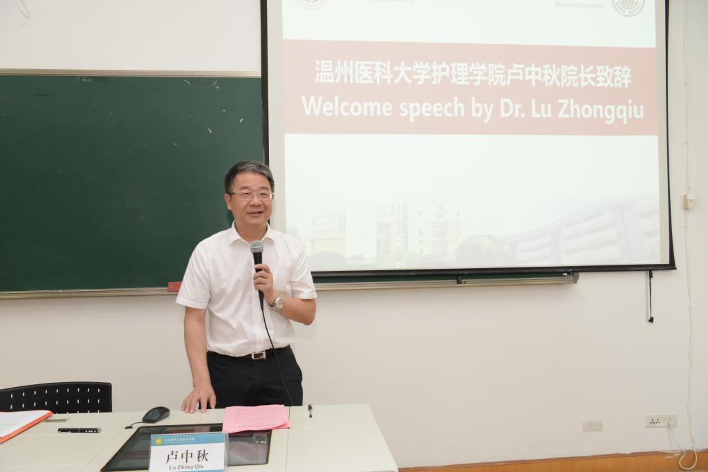 7月24日,taptap点点官方网站与泰国东方大学合作举办的护理学专业硕士学位教育项目开班典礼在taptap点点体育学术报告厅举行。泰国东方大学taptap点点体育院长Pornchai Juallamate博士、泰方项目负责人Chintana Wacharasin博士,taptap点点体育院长卢中秋、党委书记陈慧、副院长蔡福满、副院长杨晔琴,各教研室负责人及首届26名学生等参加开班典礼。