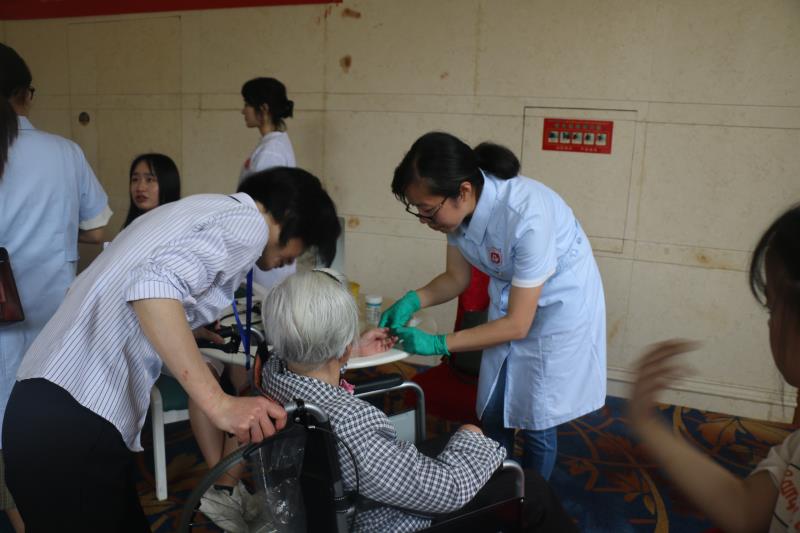 之后,他们为公寓的老人们测量血压、血糖,并做健康咨询与宣教,叮嘱老人们保持良好的生活习惯。对于老年高血压患者,师生们重点提醒定时吃降压药。对于高血糖患者,师生们则重点叮嘱饮食上的注意事项。针对老人们提出的问题,师生们耐心地进行了一一解答。