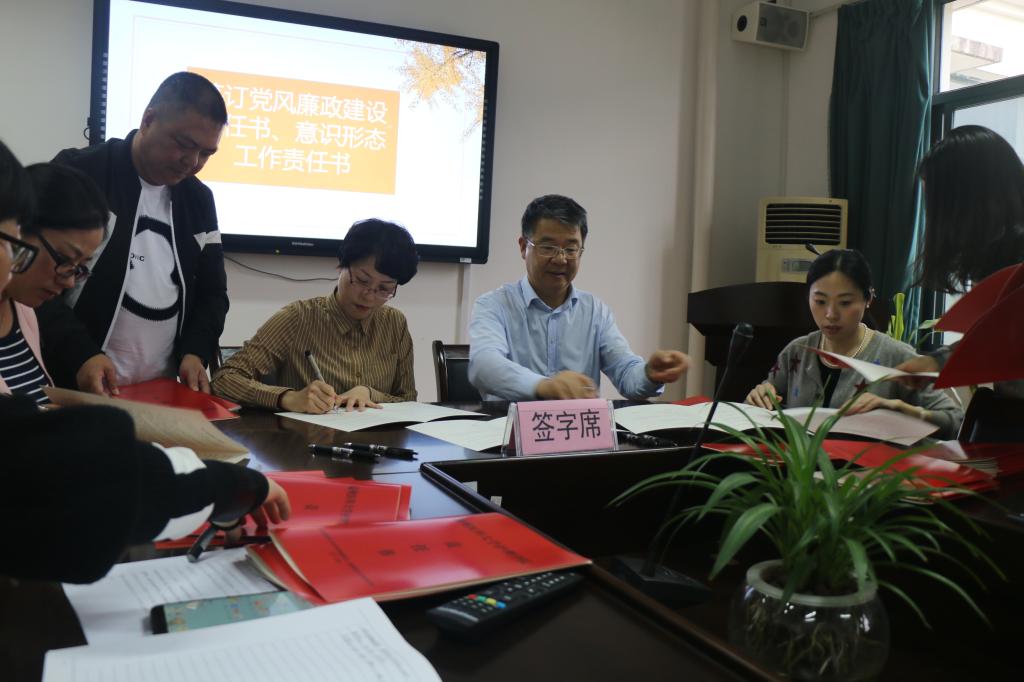 会上,院长卢中秋、党委书记陈慧与学院各科室、教研室、实验室负责人及各党支部书记签订了2019年度党风廉政建设责任书。