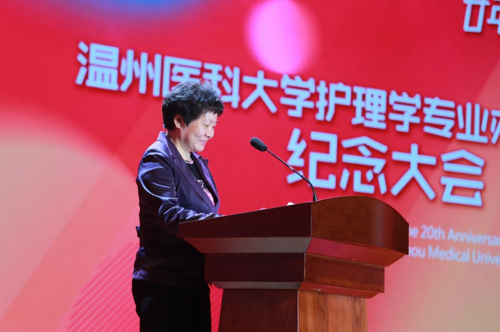 吴欣娟理事长代表中华护理学会致辞,感谢学校为护理事业发展所做的贡献,并简要介绍了我国护理事业发展状况,希望我校护理学专业传承20年的办学历史,继续开拓进取、勇攀高峰,为社会培养更多更好的高级护理人才,为高等护理教育、为健康中国建设做出新的更大的贡献!吴欣娟表示,中华护理学会将会一如既往地支持和关注我校护理学专业的发展,携手推进健康中国建设,共创护理事业美好的明天。