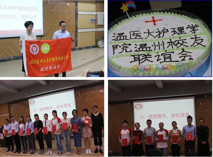 随后,校友张雪详细介绍了温州联谊会筹备情况。在校友郭若的主持下,会议审议并通过了《taptap点点体育校友会温州联谊会章程》、《taptap点点体育校友会温州联谊会首届理事名单》。温州联谊会会长陈德裕从陈慧书记手中接过旗帜,象征着联谊会正式成立。现场还为联谊会会长、副会长、秘书长、副秘书长、理事们颁发了聘书,切开了庆祝护理专业办学20周年的生日蛋糕。