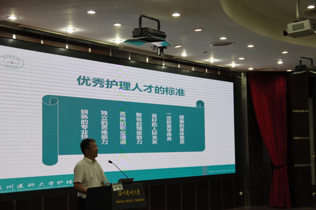最后,卢中秋院长为新生们进行专业思想教育。卢院长从护理专业是什么、为什么学护理、怎样学好护理三个方面,深入浅出地讲解护理专业和护理职业,指导新生们在大学期间如何协调生活与学习,并以“勤勉、仁爱、慎独、求真”八字院训与新生们共勉,希望大家牢记初心,成就白衣天使梦想,成为德智体美全面发展的应用型人才。
