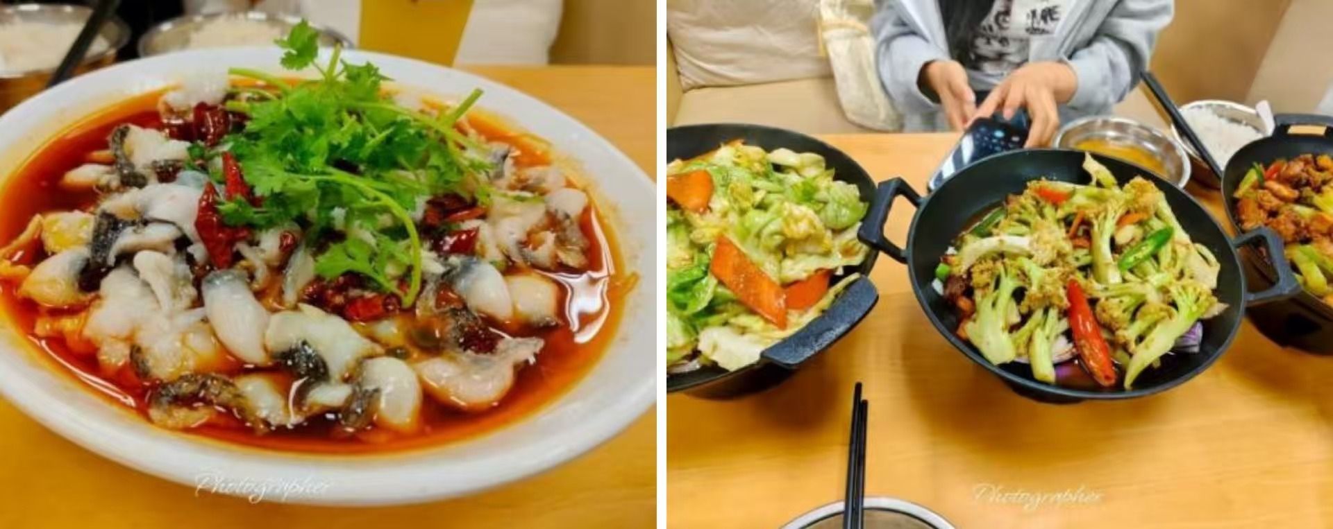 食堂里,各种风味的美食琳琅满目,任你挑选;