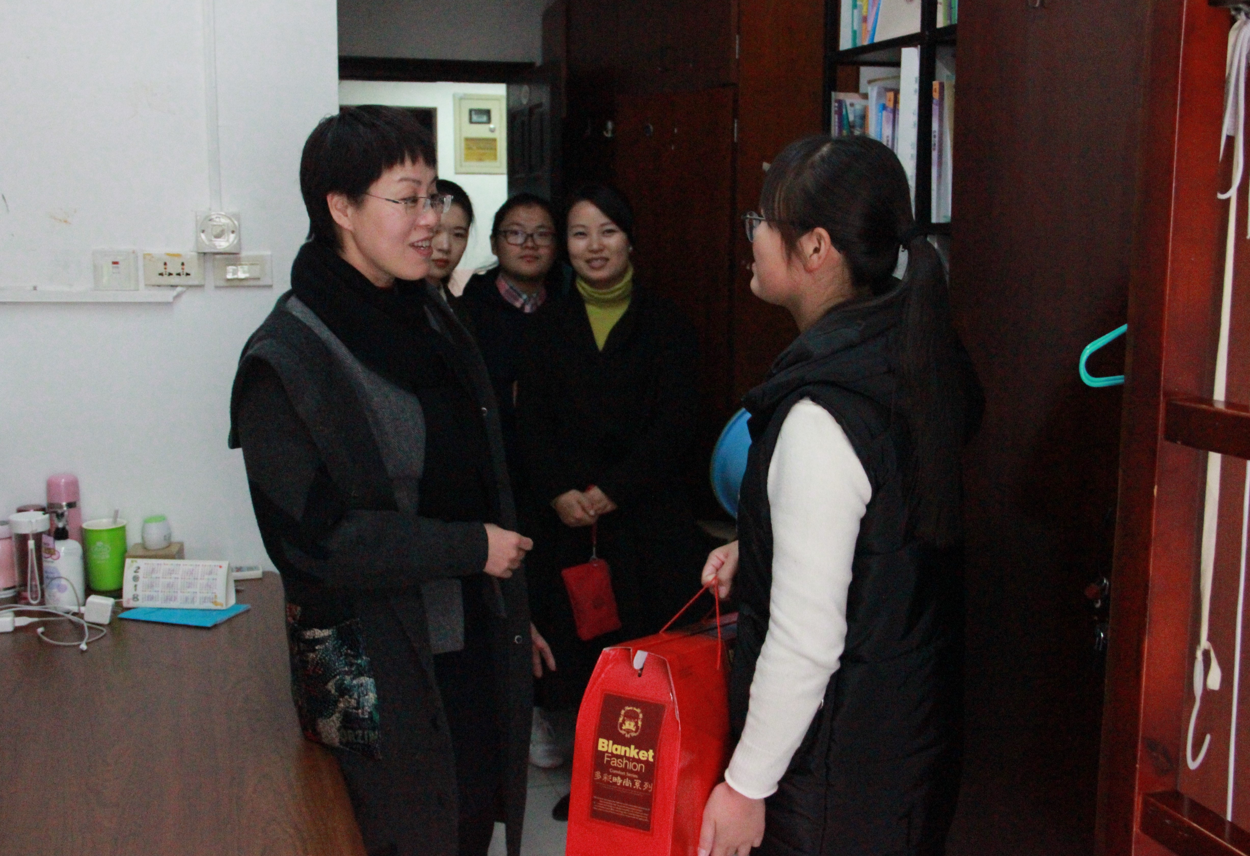 12月12日,taptap点点体育党委陈慧书记一行来到学生公寓四号楼,利用午休时间代表学院对部分家庭经济困难学生进行慰问,为她们送去冬天御寒的毛毯。陈书记心细如尘,热情地与同学们进行交流,亲切关怀了同学们近一学期的生活,叮嘱同学们冬天要做好保暖工作,照顾好自己,在寝室要做好保洁和防盗,特别注意用水用电安全。陈书记十分关心同学们的学业情况,在了解同学们是否有勤工俭学情况后,陈书记表示,护理学专业的学习并不是那么容易,同学们应该以学习为主,有任何困难可以向学院反映,希望同学们的大学生活能有一个好的开端。